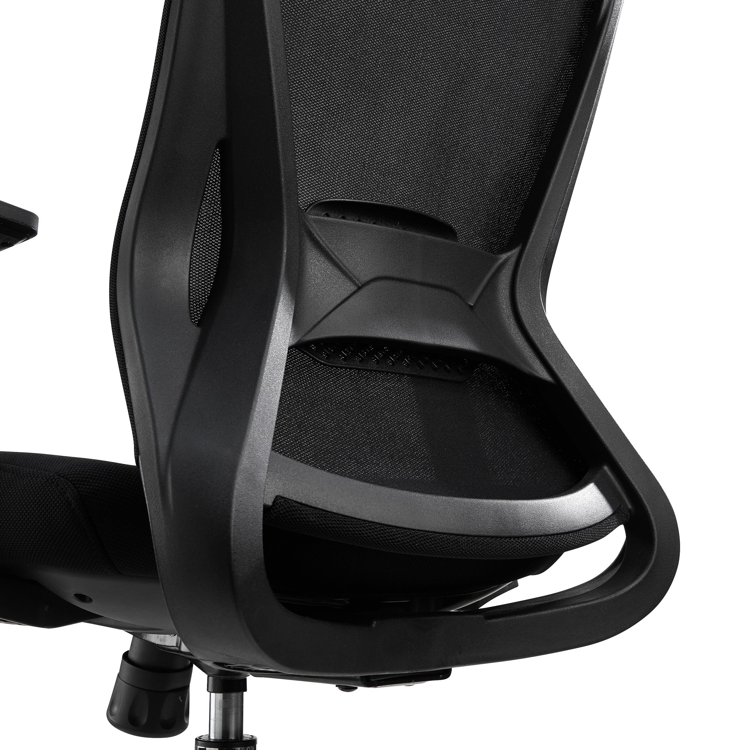 Tem um encosto ergonómico em malha respirável com um suporte lombar incluido. Esta característica é essencial para garantir um ótimo apoio da coluna. O próprio material apresenta a vantagem de não acumular odores nem transpiração.