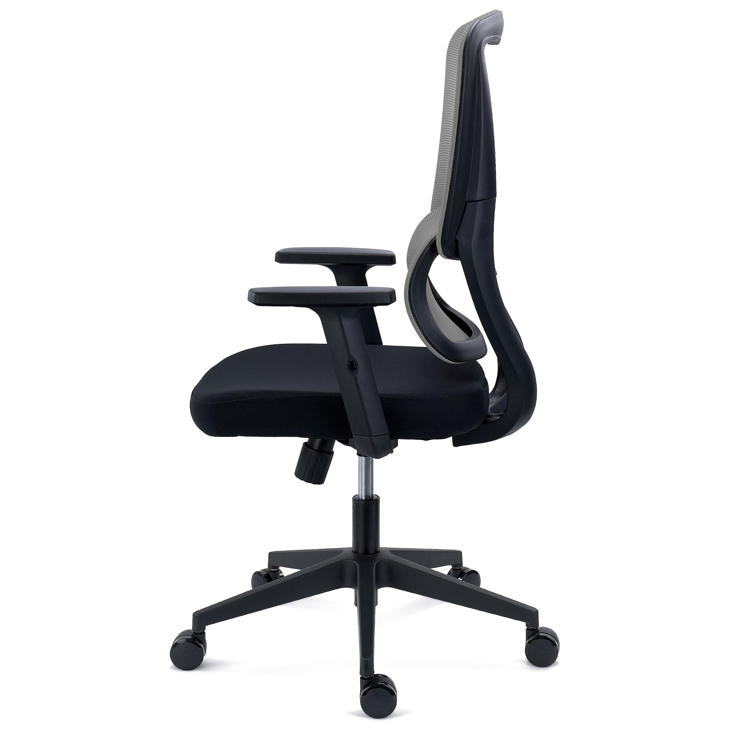 O apoio de braços é ajustável em altura O seu aspeto robusto reforça o conceito de uma cadeira duradoura para uma utilização exigente.