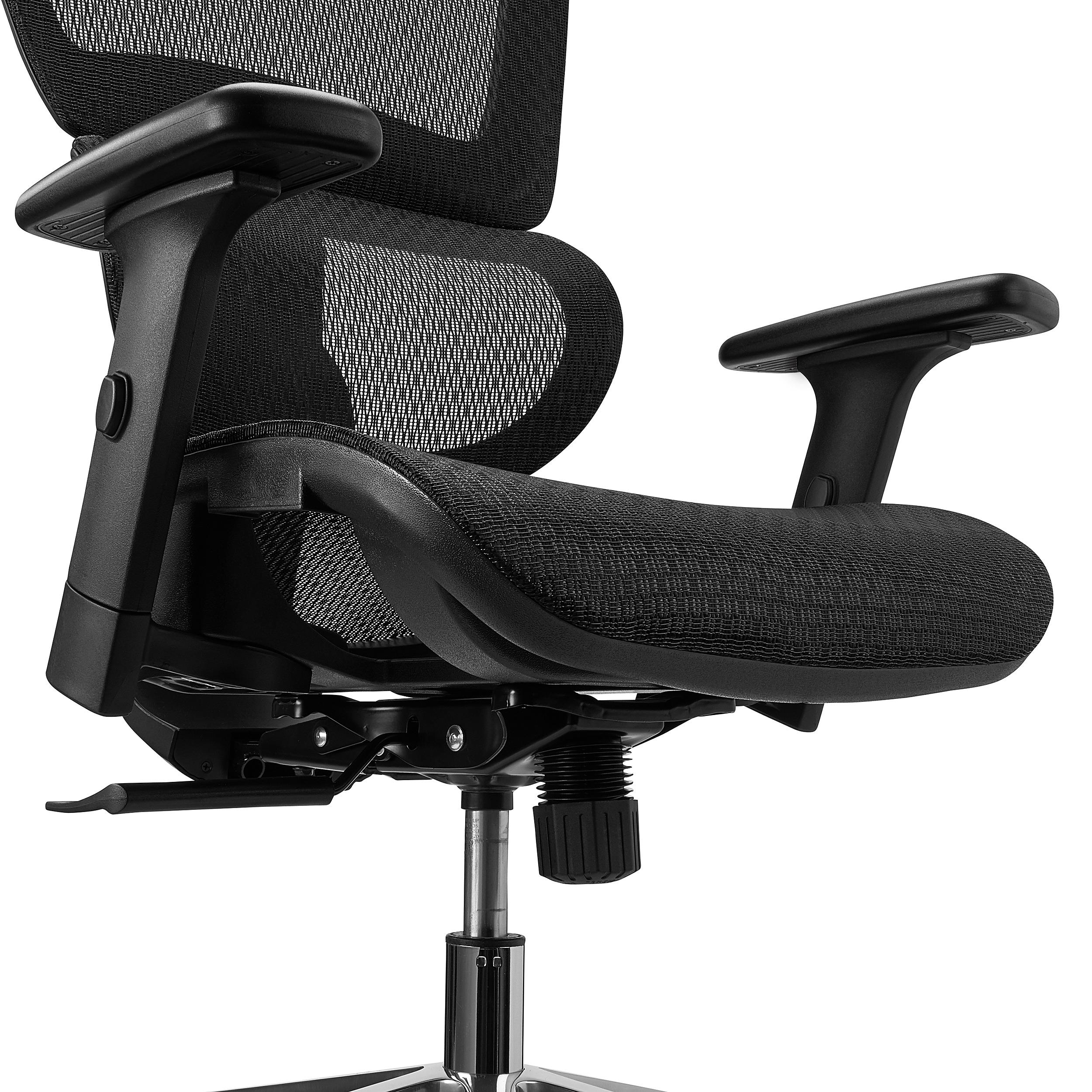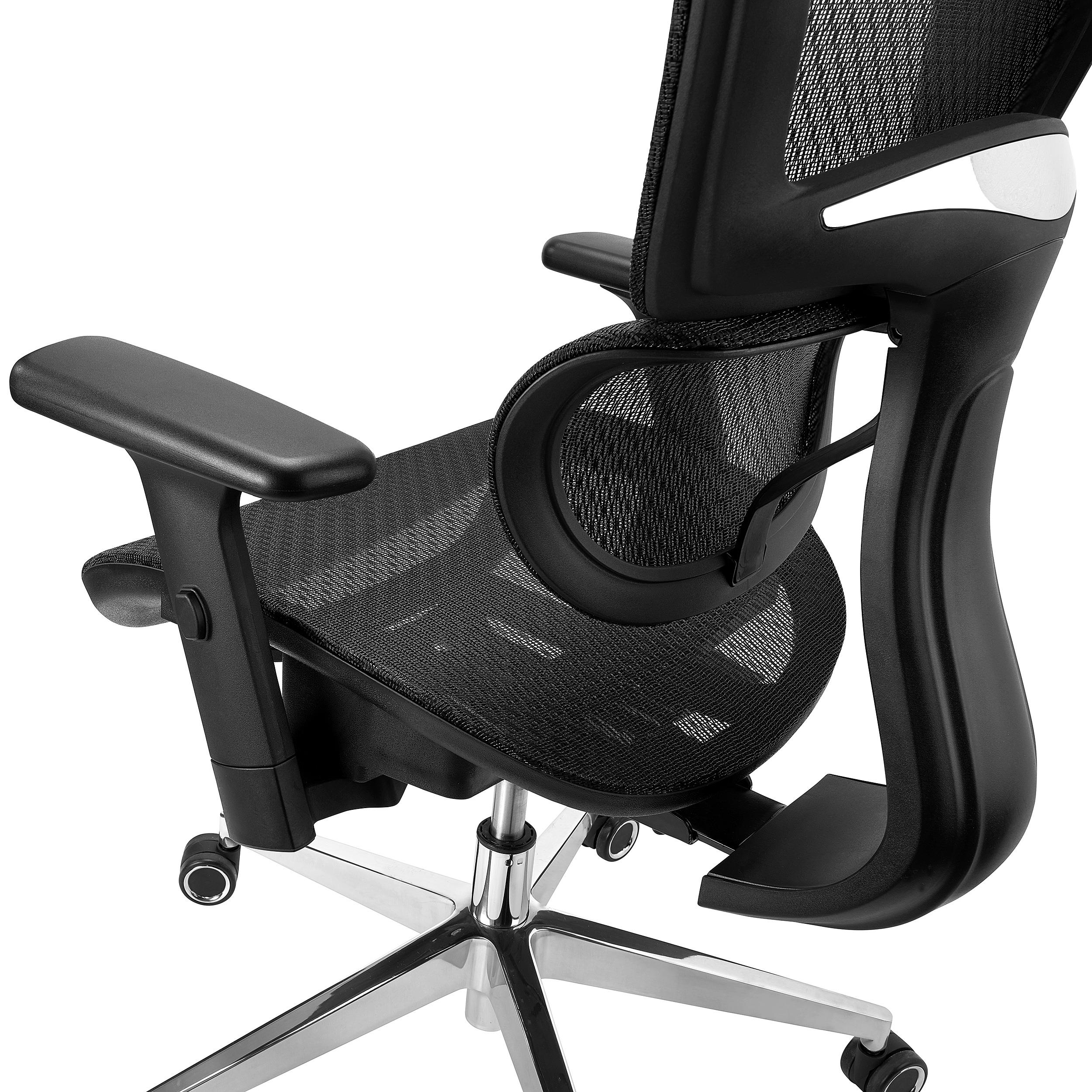 O seu design de avançada tecnologia dispõe de um formato totalmente ergonómico, uma vez que se adapta à anatomia do corpo de cada usuário e garante uma postura correcta evitando o aparecimento de problemas de coluna. Está forrada em malha respirável e inclui suporte lombar que se adapta ao usuário.