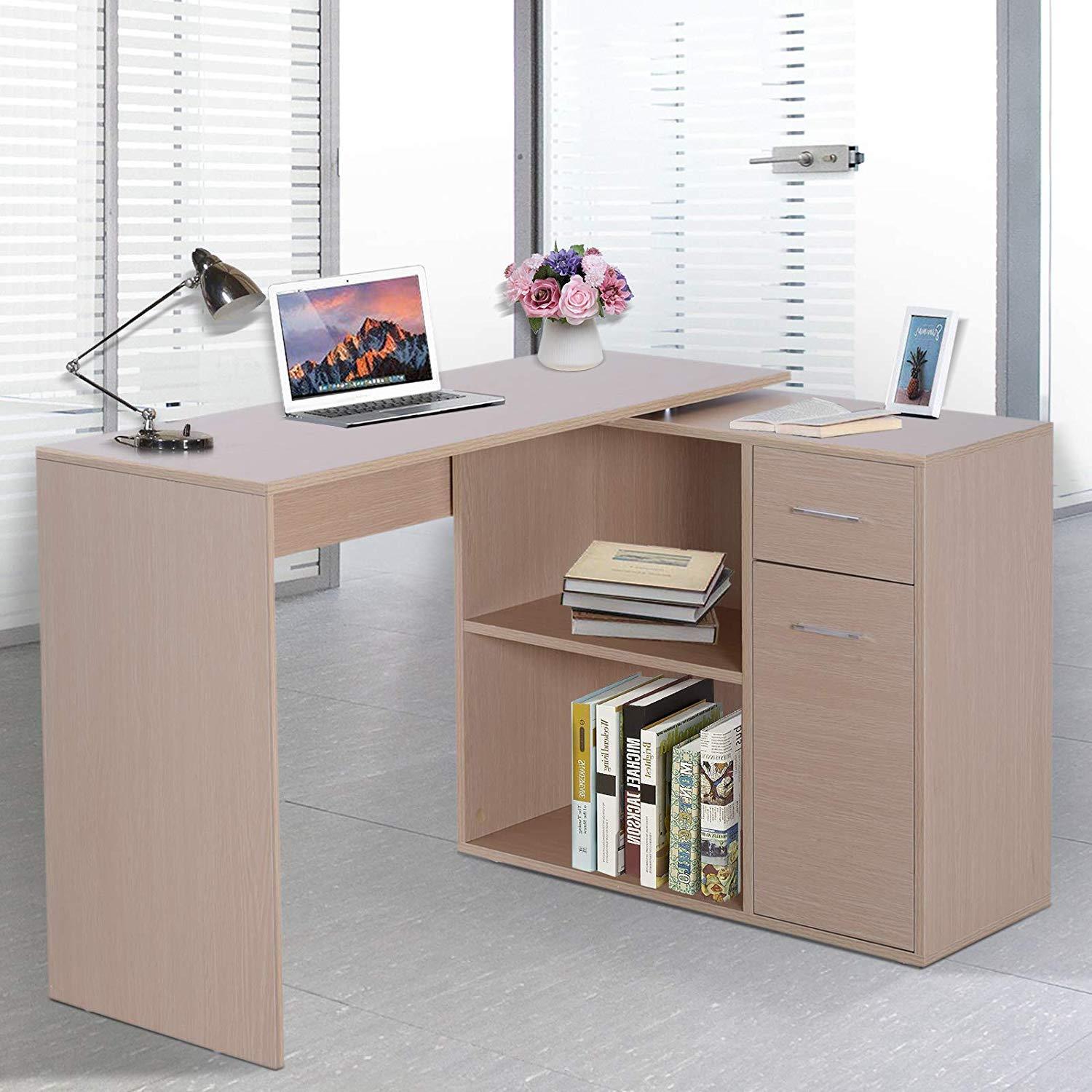 DEMO# Mesa de Escritório, YASER, Com Estantes e Armário, em Madeira, Cor Nogueira