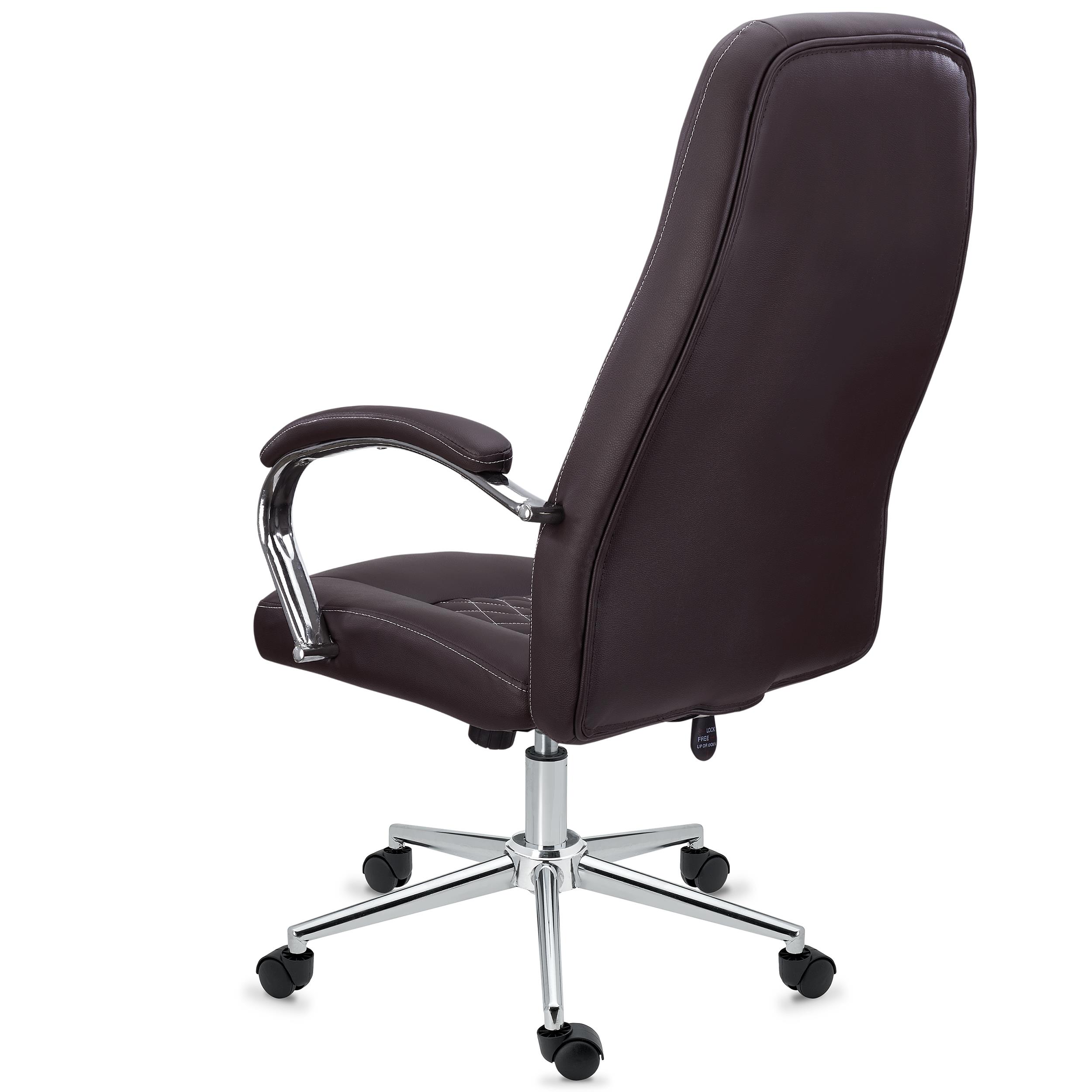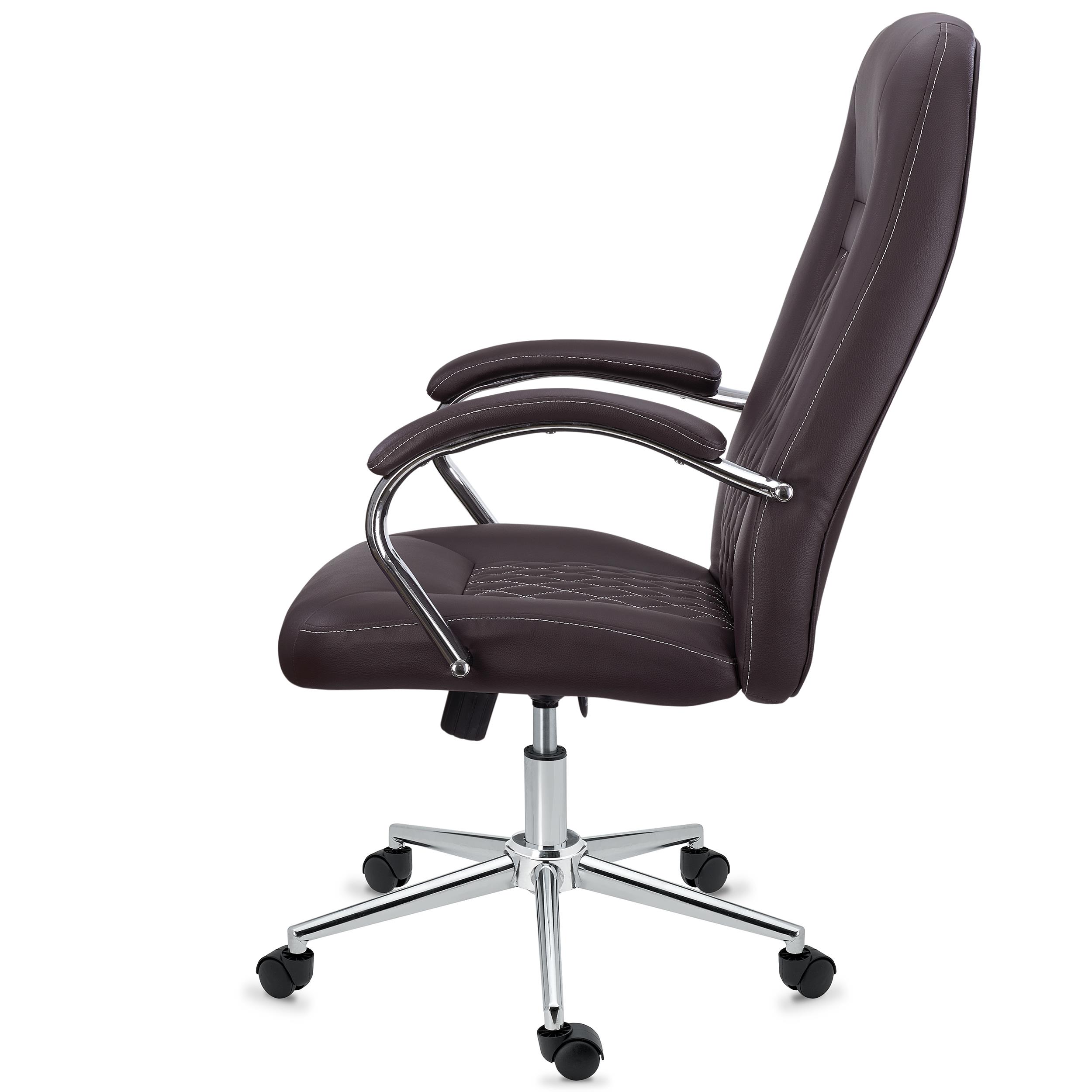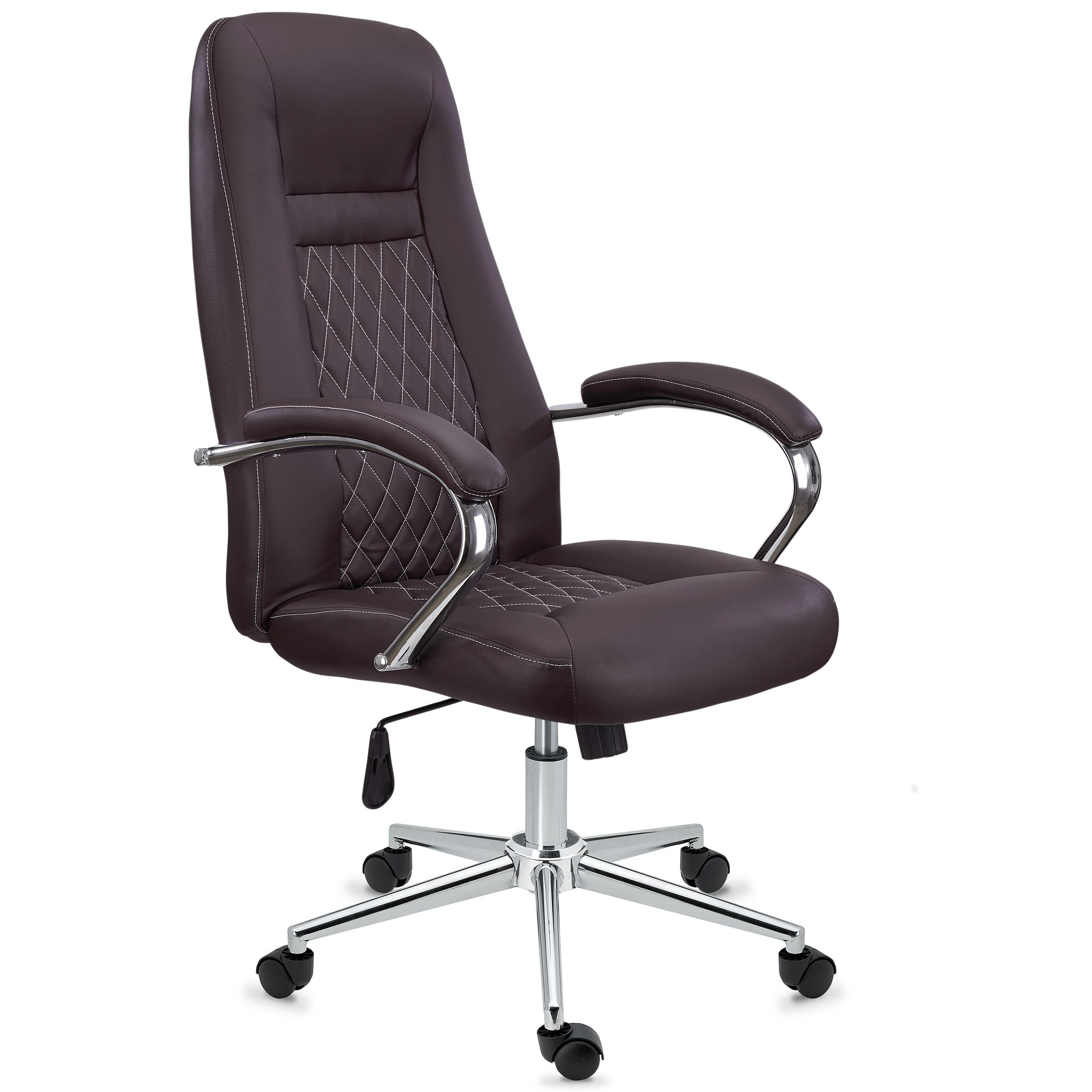 DEMO# Poltrona Ergonómica ISTAMBUL, Design Exclusivo, Em Aço e Pele, Castanho Escuro