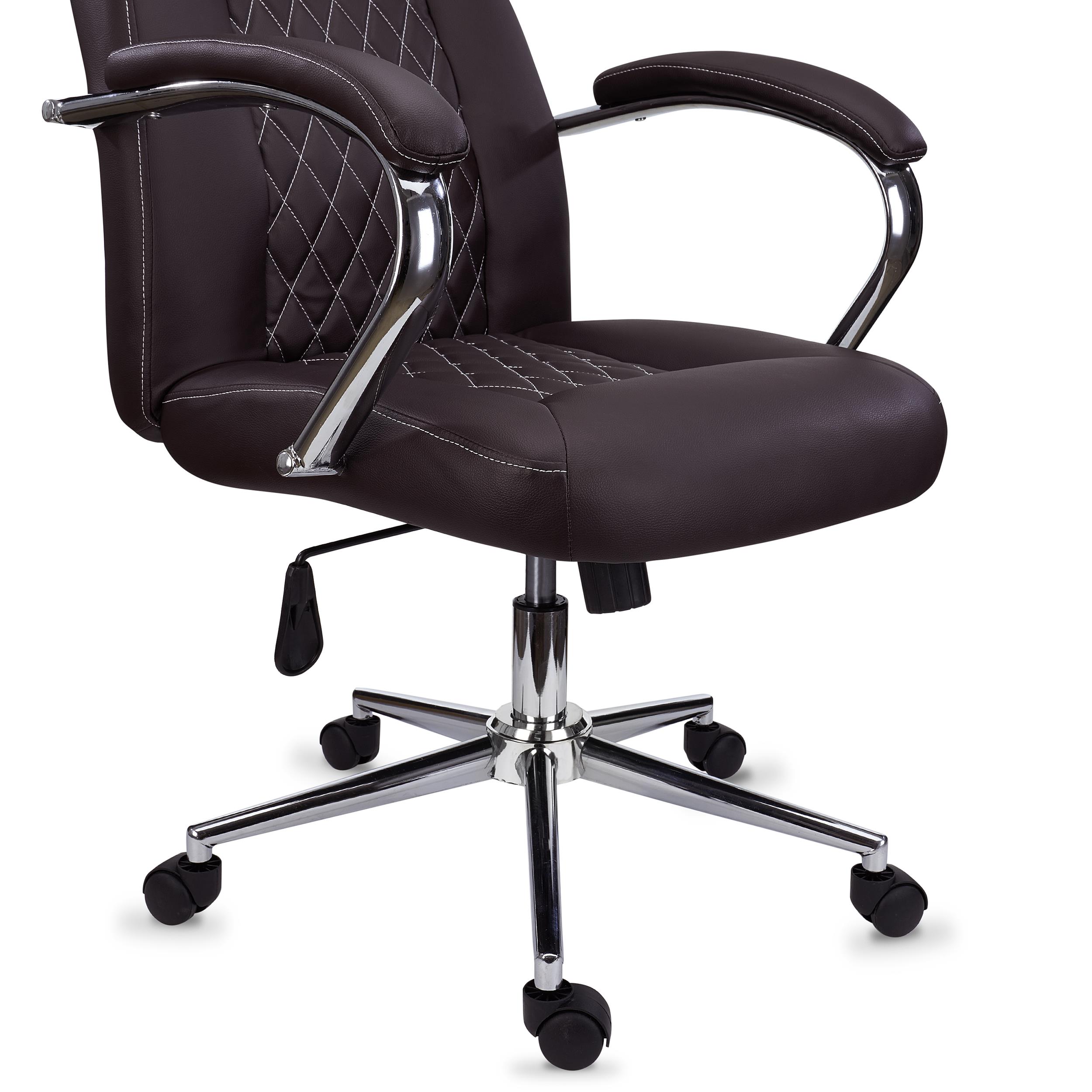 • Apoia braços de aço cromado acolchoados
