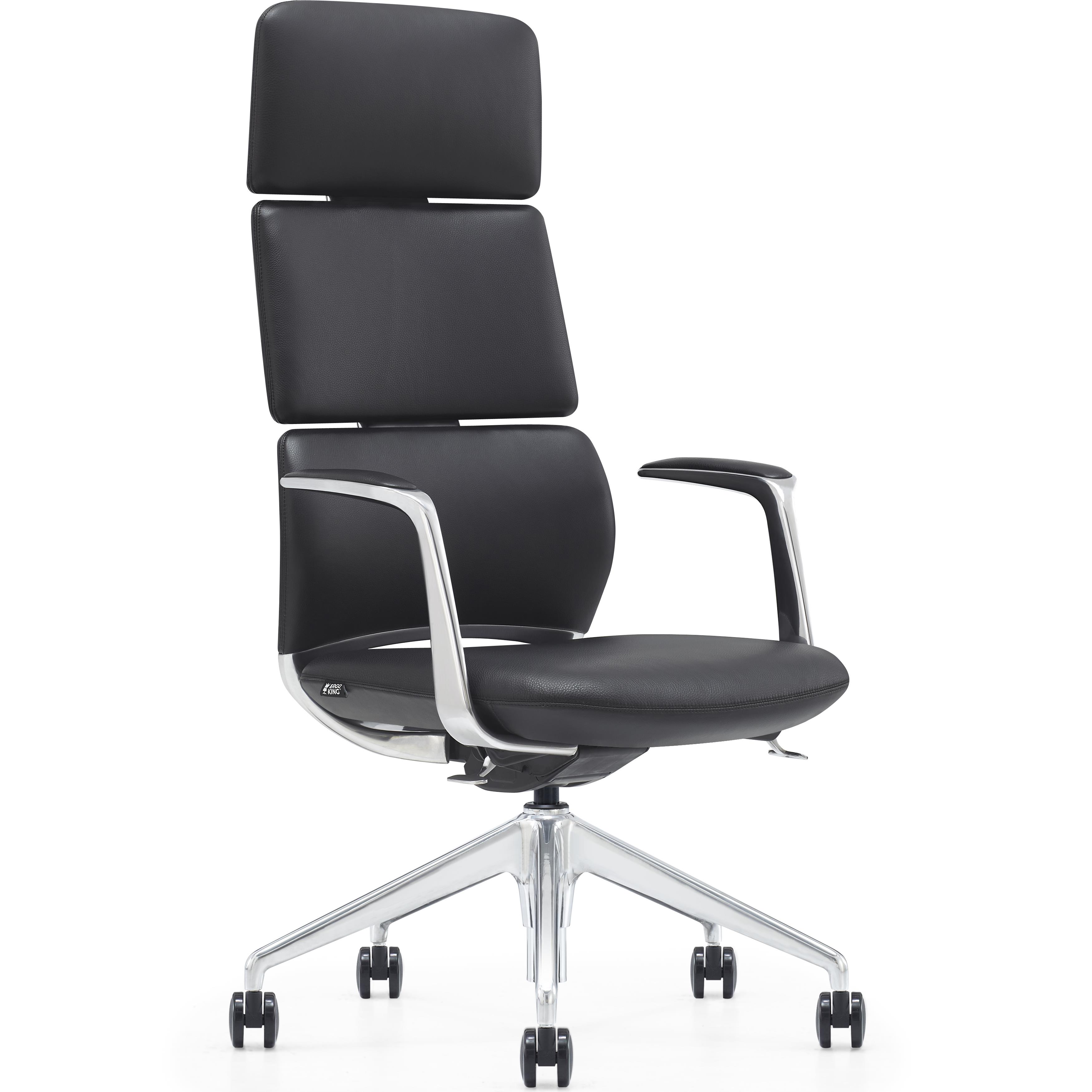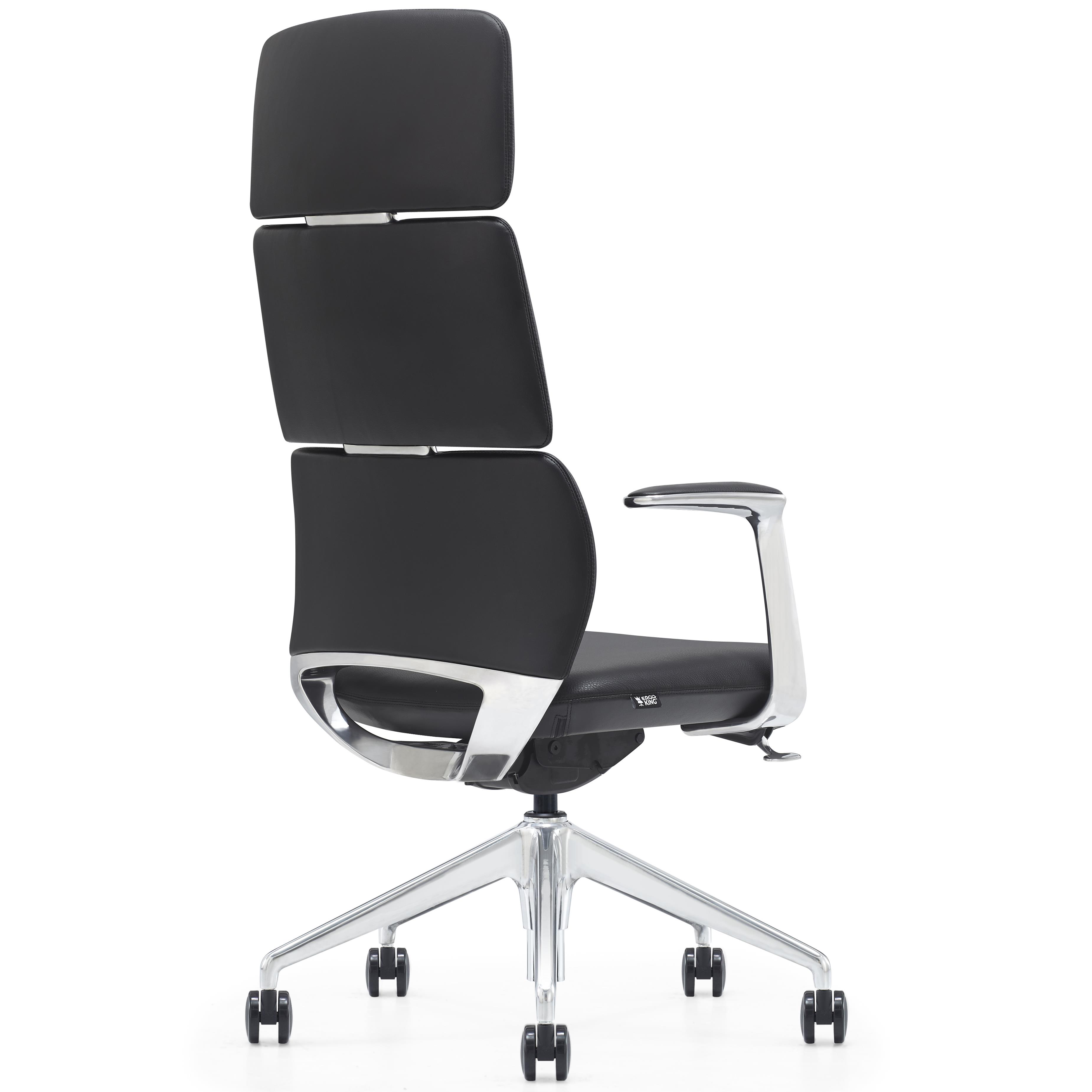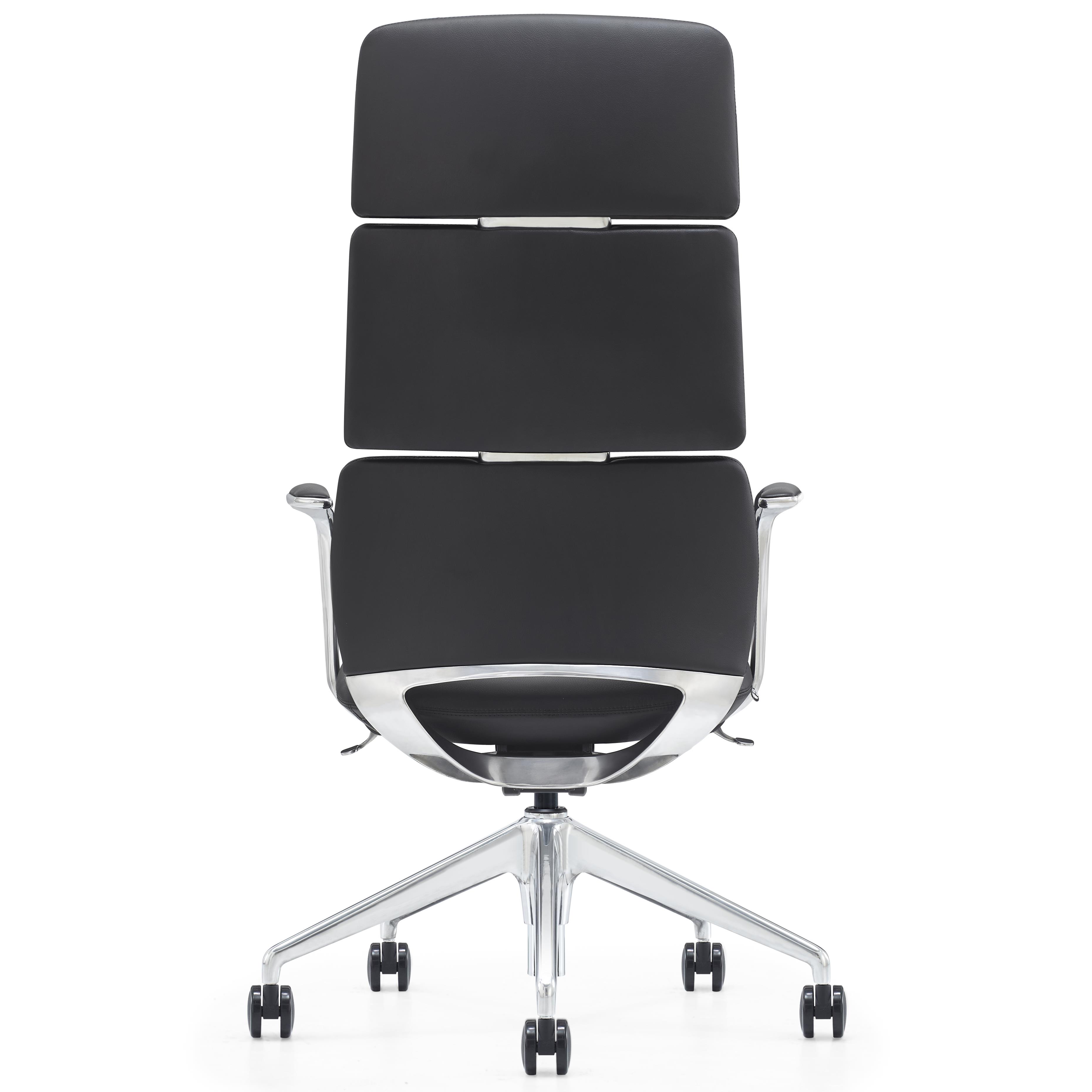 DEMO#Cadeira de Escritório DOLMEN, Design Moderno, Base em Alumínio, Pele Verdadeira, em Preto
