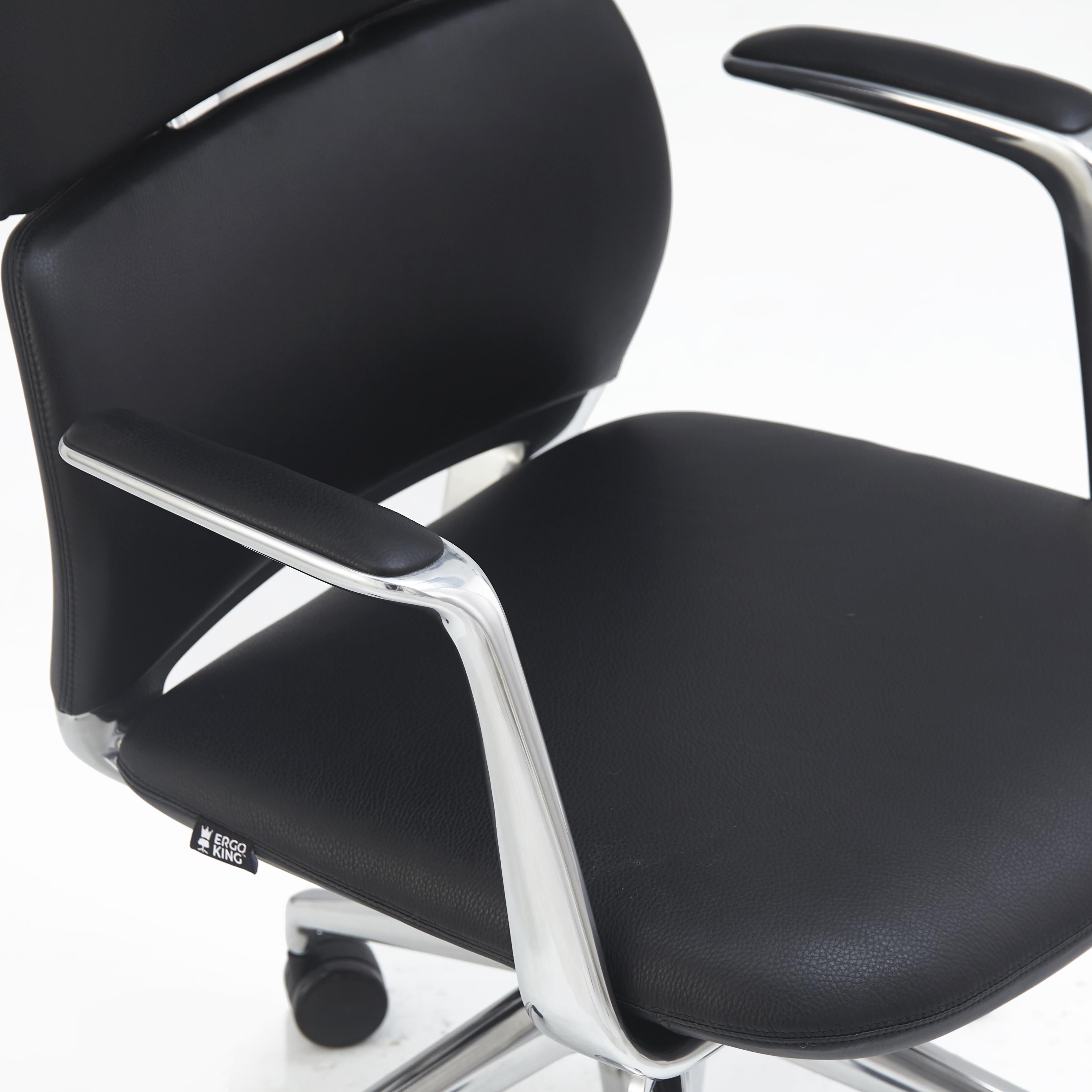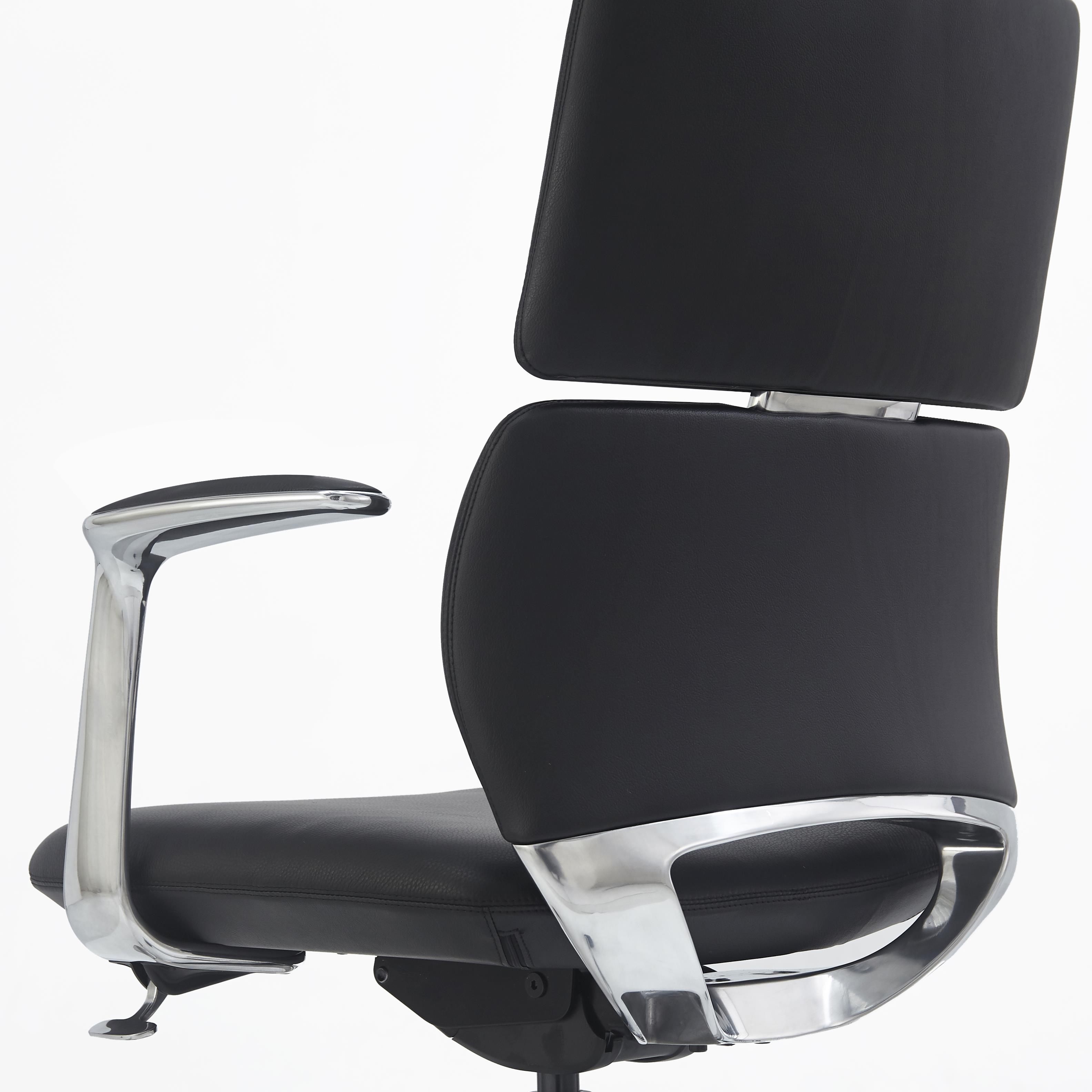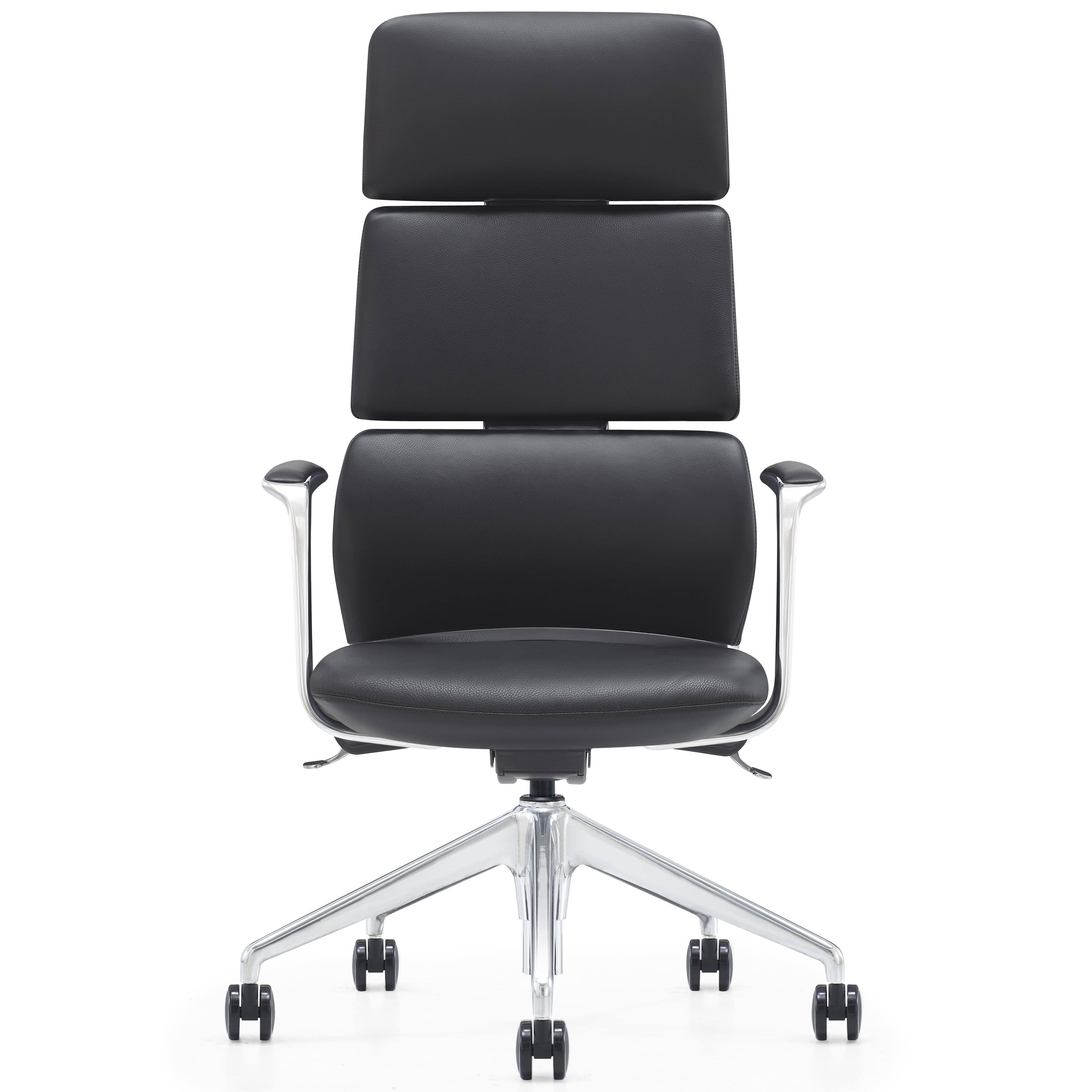 DEMO#Cadeira de Escritório DOLMEN, Design Moderno, Base em Alumínio, Pele Verdadeira, em Preto