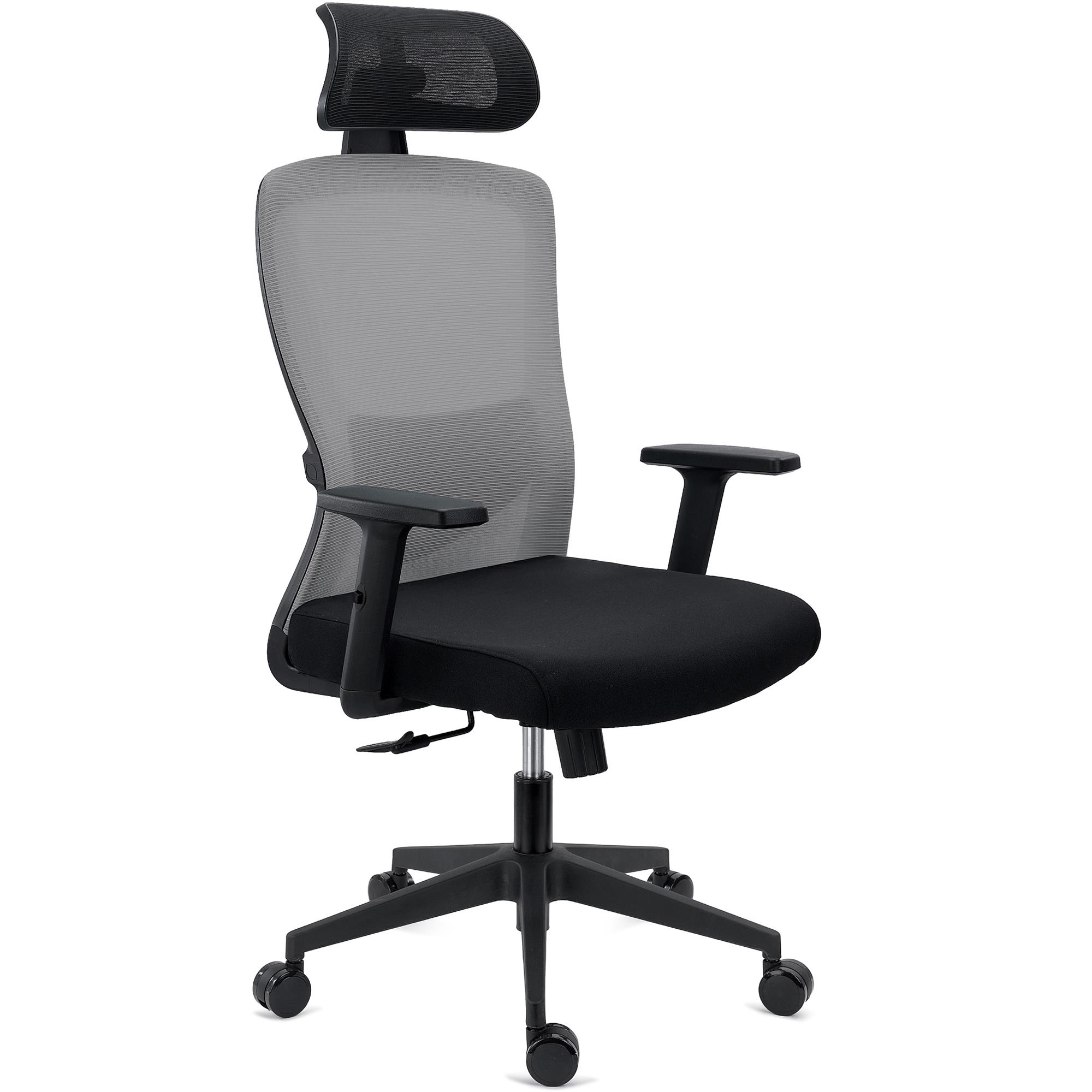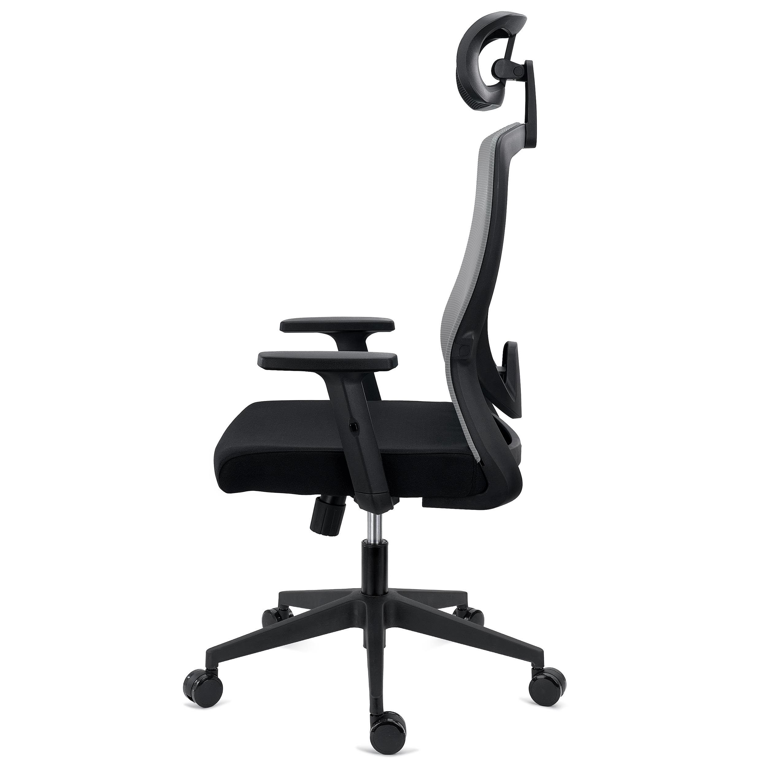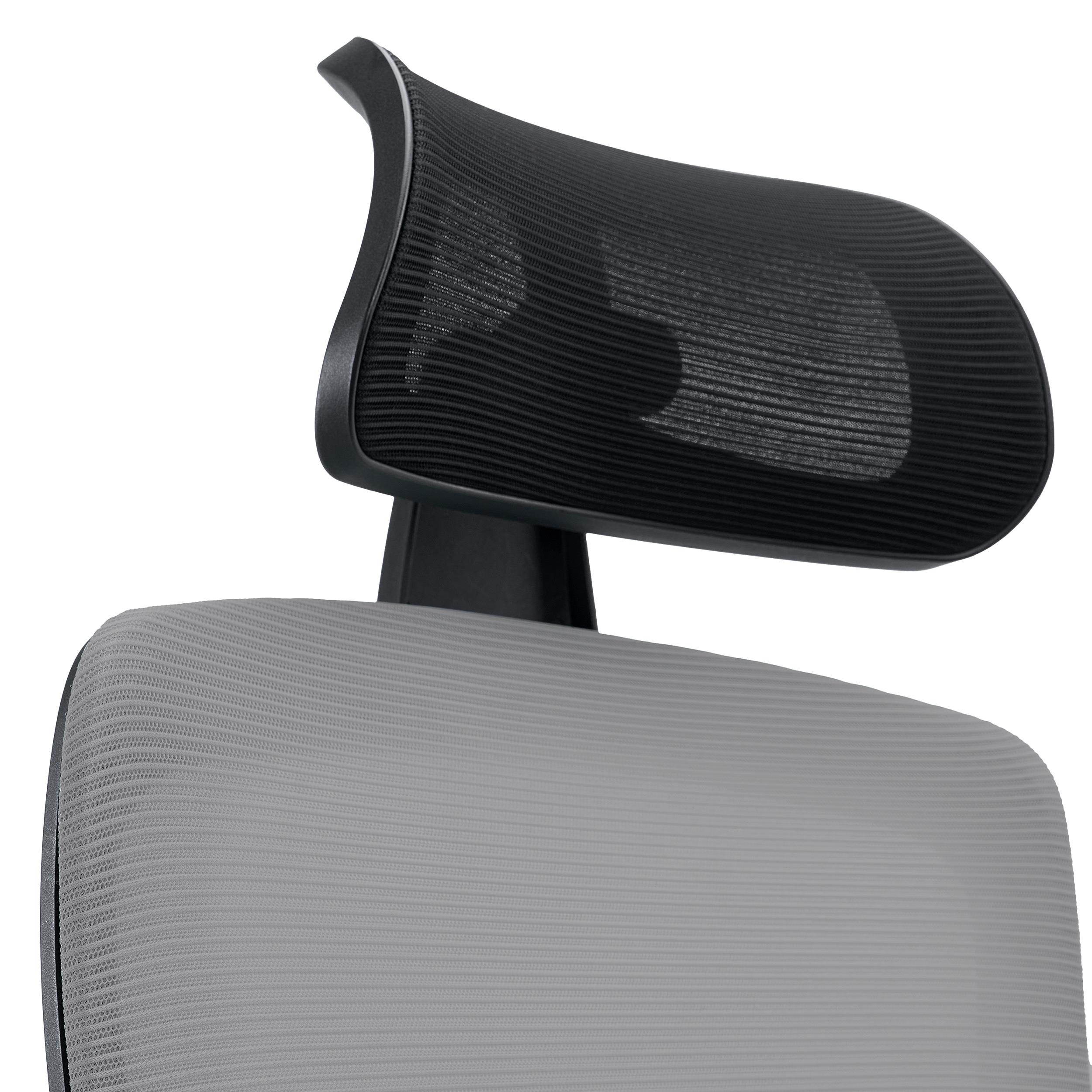 O apoio de braços é ajustável em altura O seu aspeto robusto reforça o conceito de uma cadeira duradoura para uma utilização exigente. O apoio de cabeça é regulável em altura e em ângulo, e é também estofado em malha respirável.