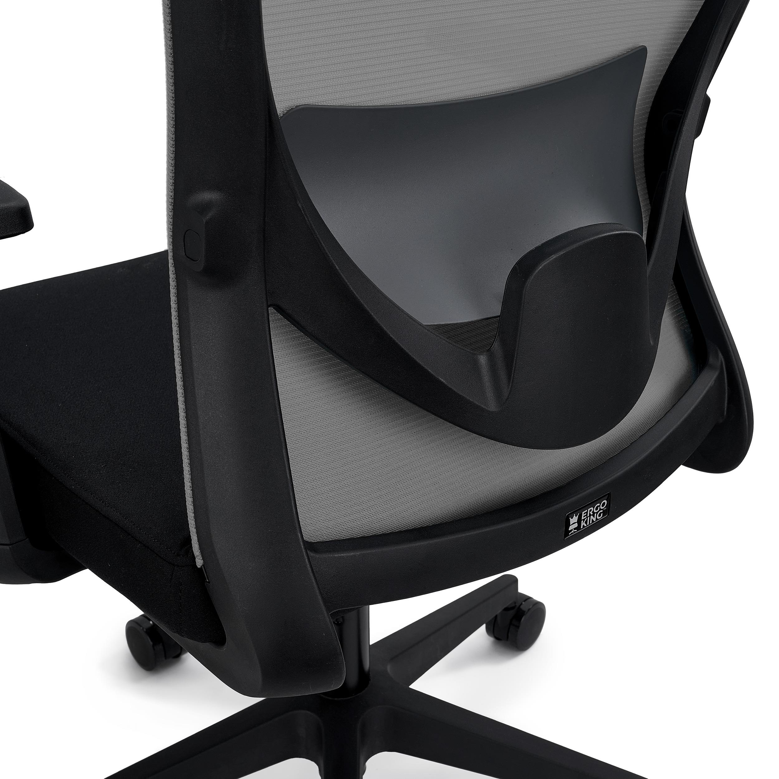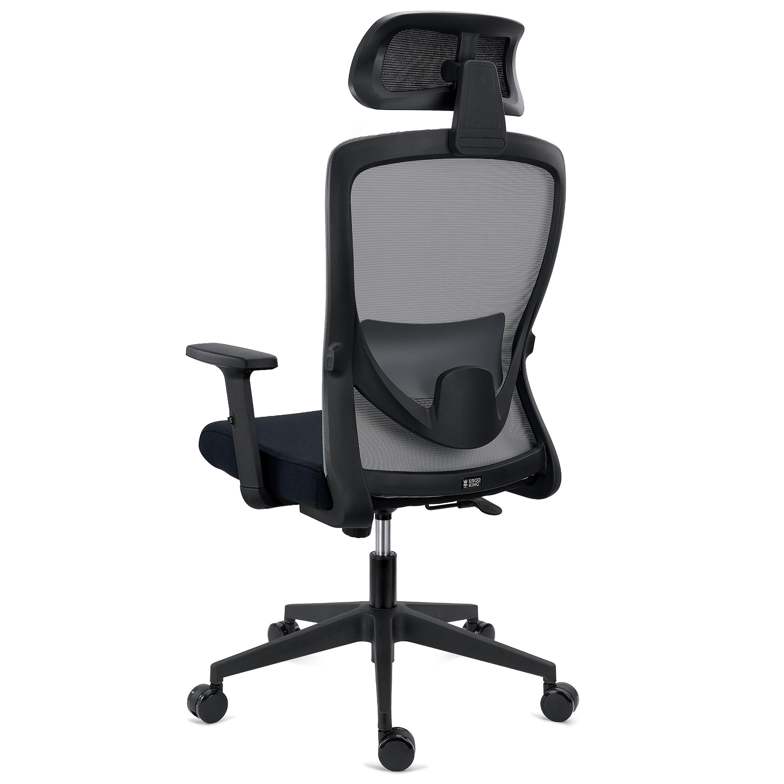 O encosto apresenta uma curva ergonómica, essa característica permite uma postural ideal. O suporte lombar é ajustável em altura, uma característica de alto nível que faz toda a diferença no seu conforto.