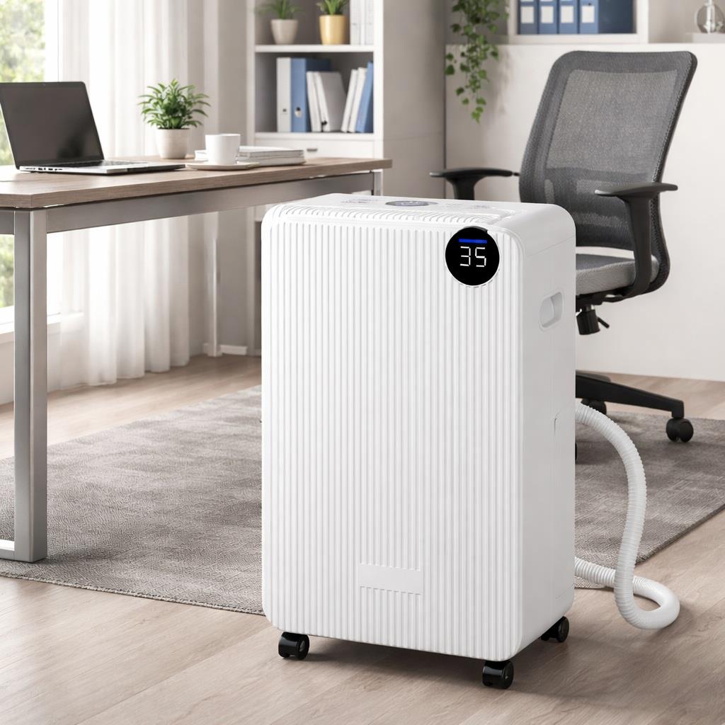 Desumidificador para escritório AEROSEC, o modelo ideal para manter o ambiente de trabalho sempre confortável e produtivo, graças ao seu elevado desempenho. Este desumidificador reduz eficazmente a humidade, melhorando a qualidade do ar e protegendo documentos e equipamentos eletrónicos. Silencioso e com um design moderno, integra-se facilmente em qualquer espaço profissional.