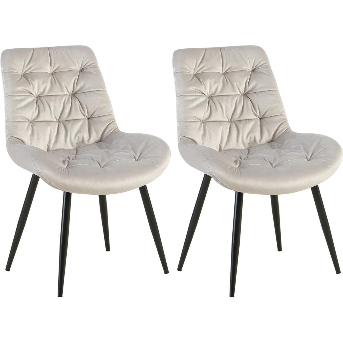 Lote 2 Cadeira de Visita LENNY, Pernas em Metal Preto, Em Veludo, Cor Cinzento Claro