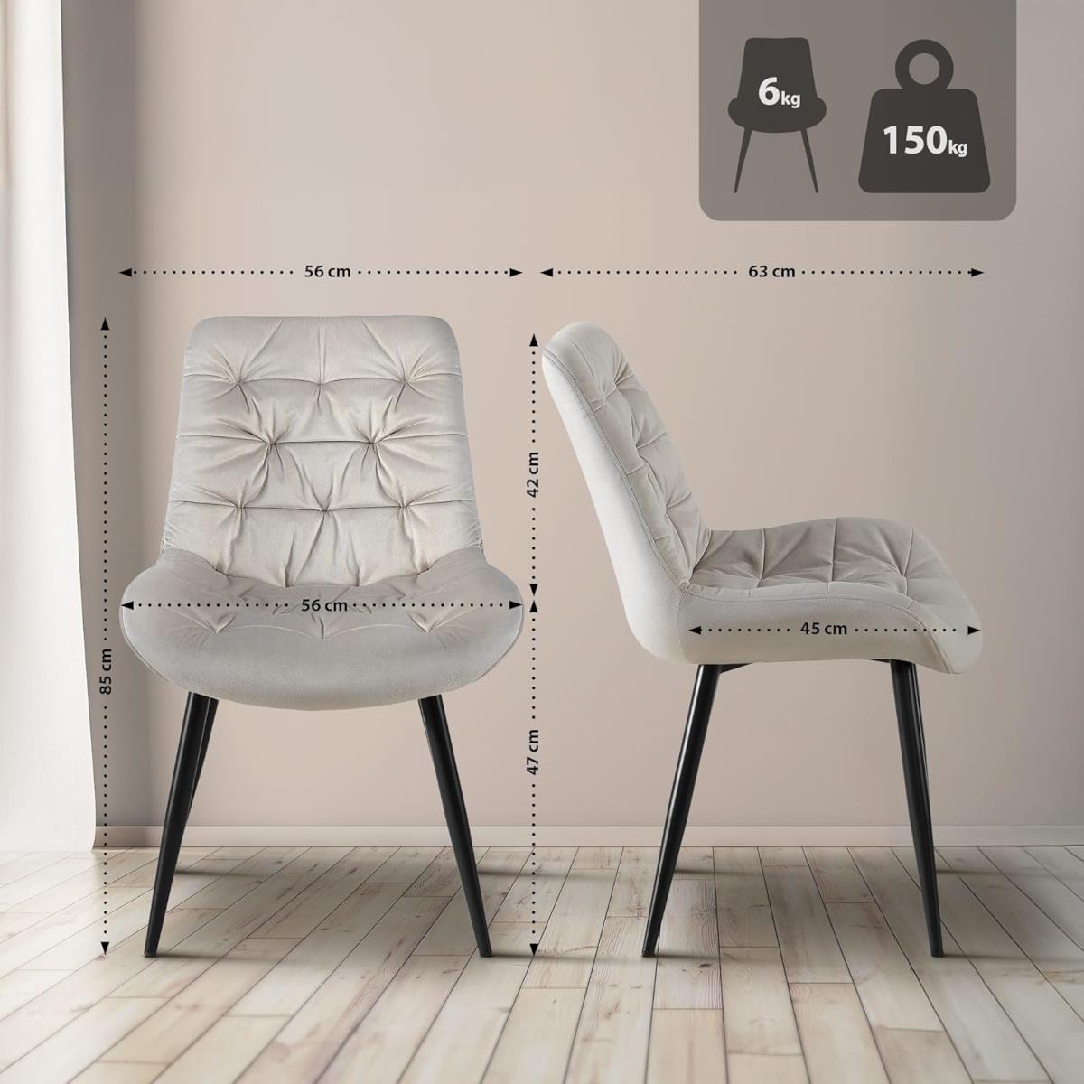 estrutura de 4 pernas é feita de metal preto e tem capacidade de carga de 150 kg. As cadeiras vêm com protetores de piso que protegem o piso contra danos ou arranhões.