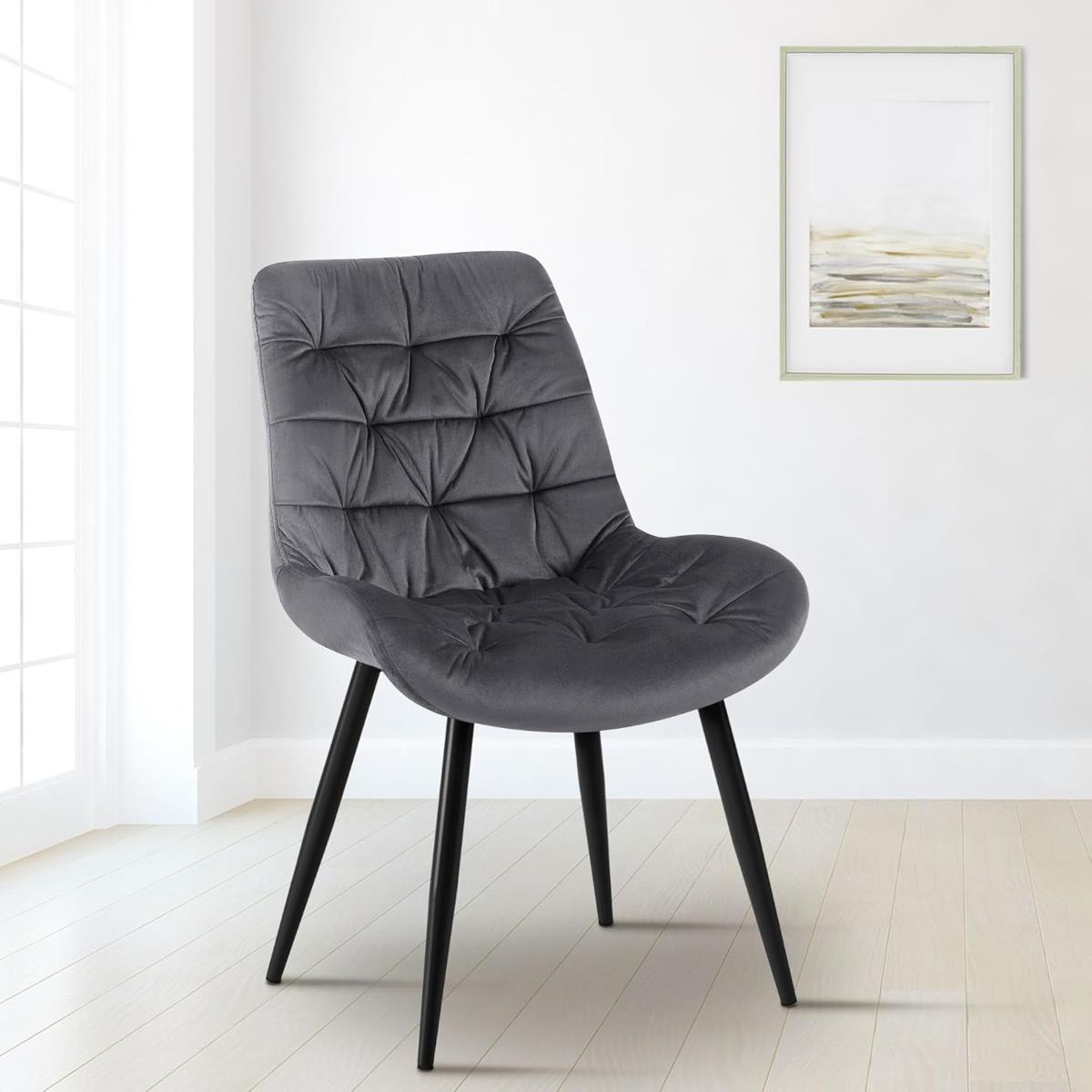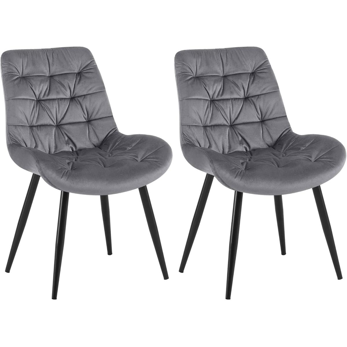 Lote 2 Cadeira de Visita LENNY, Pernas em Metal Preto, Em Veludo, Cor Cinzento Escuro