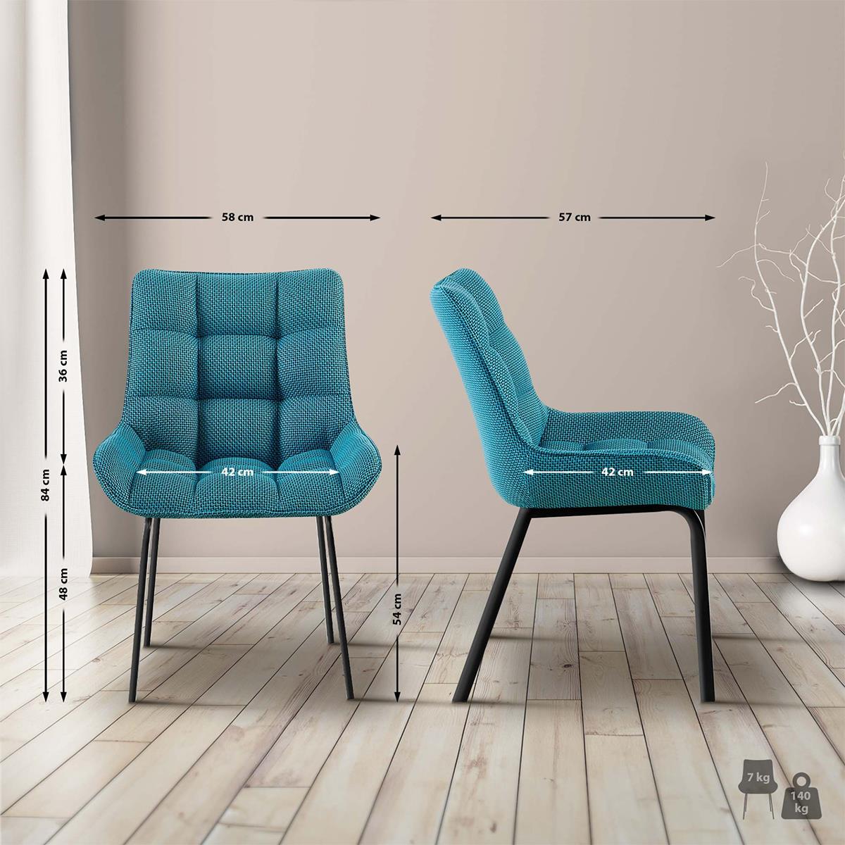 Lote 2 Cadeiras de Visita TANGO, Design Elegante, Comodidade, Pernas Pretas, em Pano Turquesa