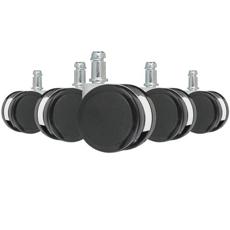 Lote de 5 rodas para pisos duros de 11 x 50 mm, o acessório ideal para sua cadeira executiva. Um lote de design elegante clássico, fabricado em 100% Poliuretano, para todas as cadeiras de escritório que pretendam manter a elegância e harmonia do escritório.