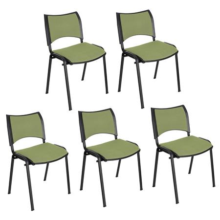 Lote de 5 Cadeiras de Visitante ROMEL, Acolchoado Confortável, Empilhável, Patas Pretas, em Pano Verde Lima