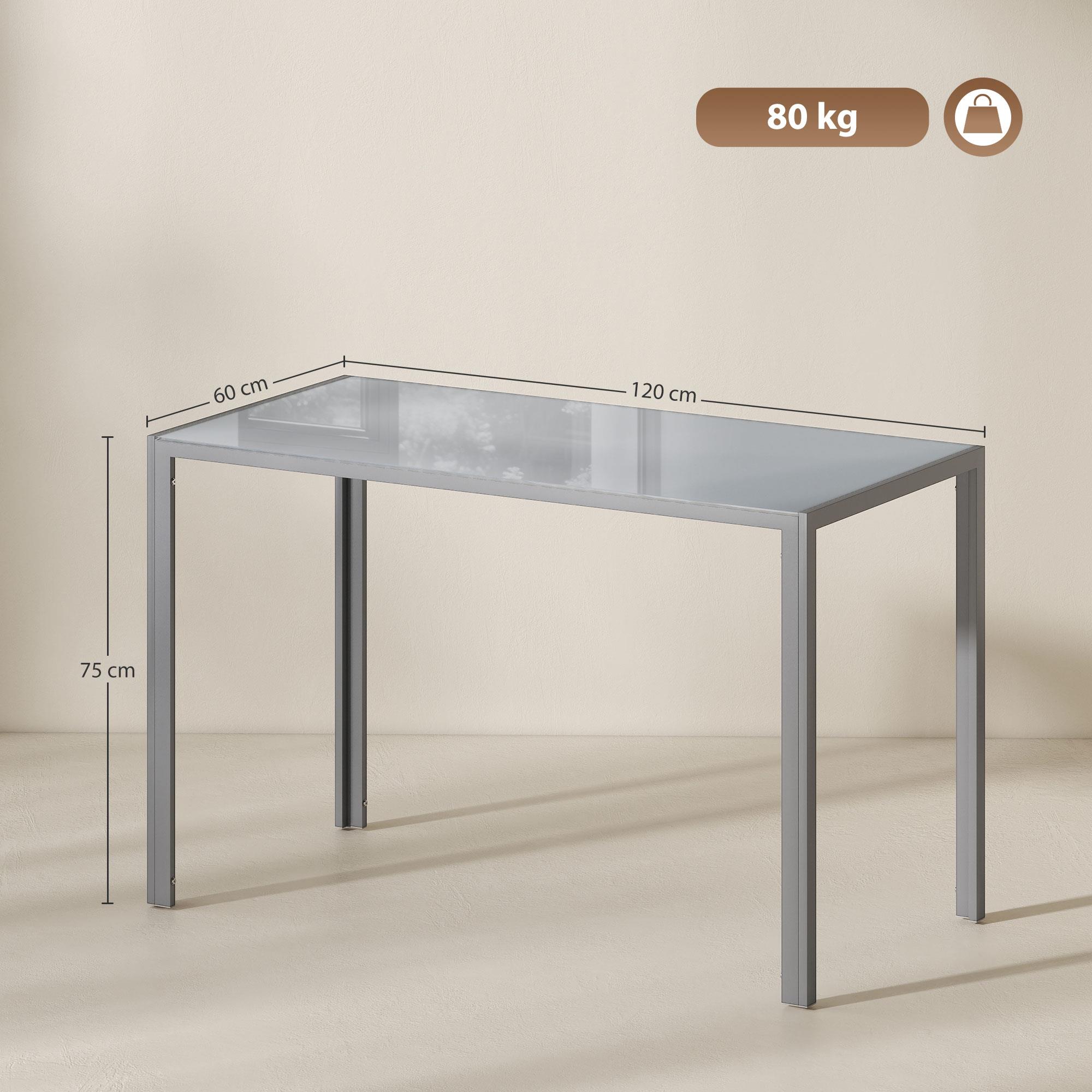 Mesa de Escritório MAPUTO, 120x60x75 cm, Vidro Temperado, Cor Cinzento