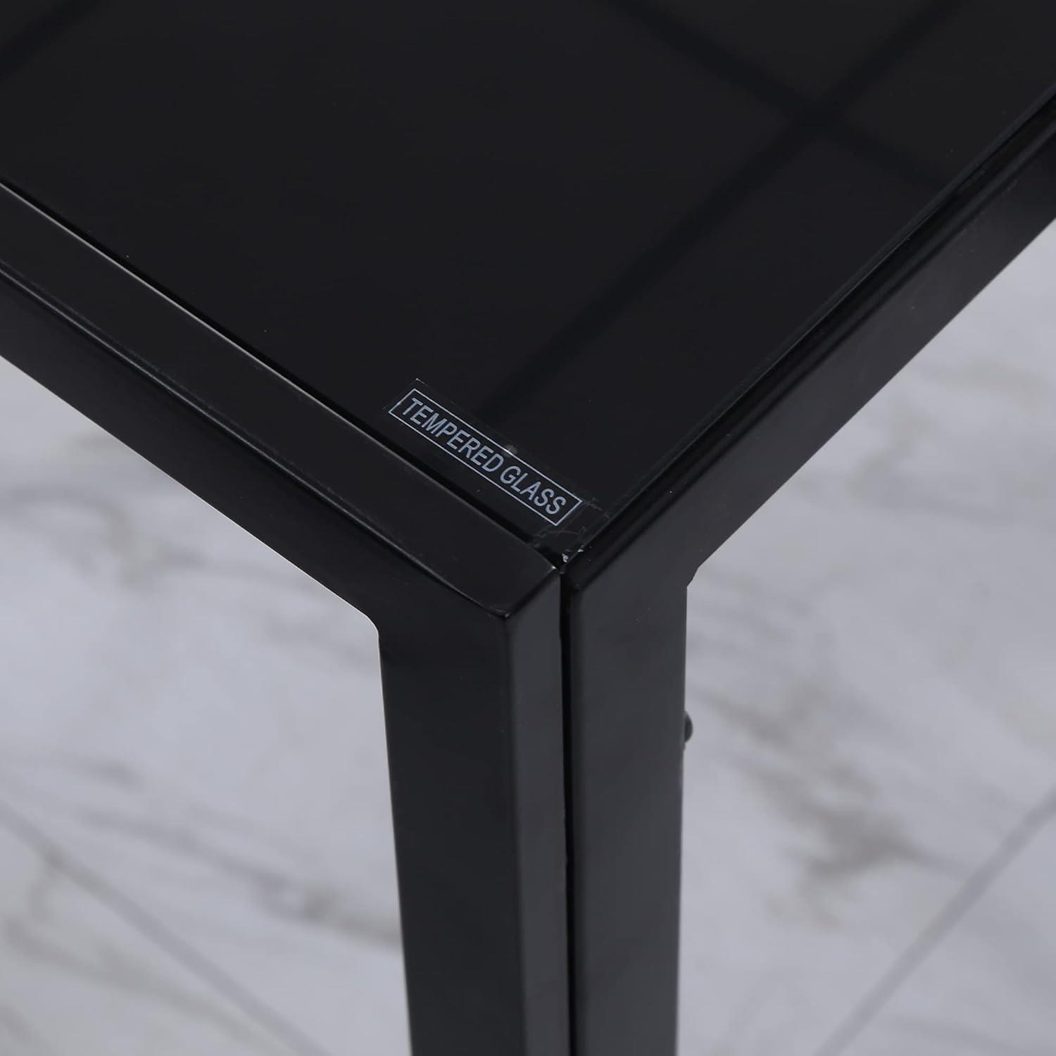 As pernas são em metal resistente, proporcionando estabilidade e solidez à estrutura. O seu design linear e minimalista integra-se perfeitamente com o tampo em vidro. Possuem ainda proteções em plástico para o pavimento, evitando riscos indesejados.