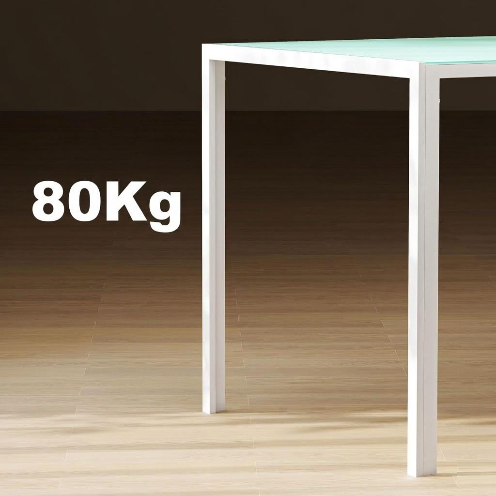 As pernas são em metal resistente, proporcionando estabilidade e solidez à estrutura. O seu design linear e minimalista integra-se perfeitamente com o tampo em vidro. Possuem ainda proteções em plástico para o pavimento, evitando riscos indesejados.