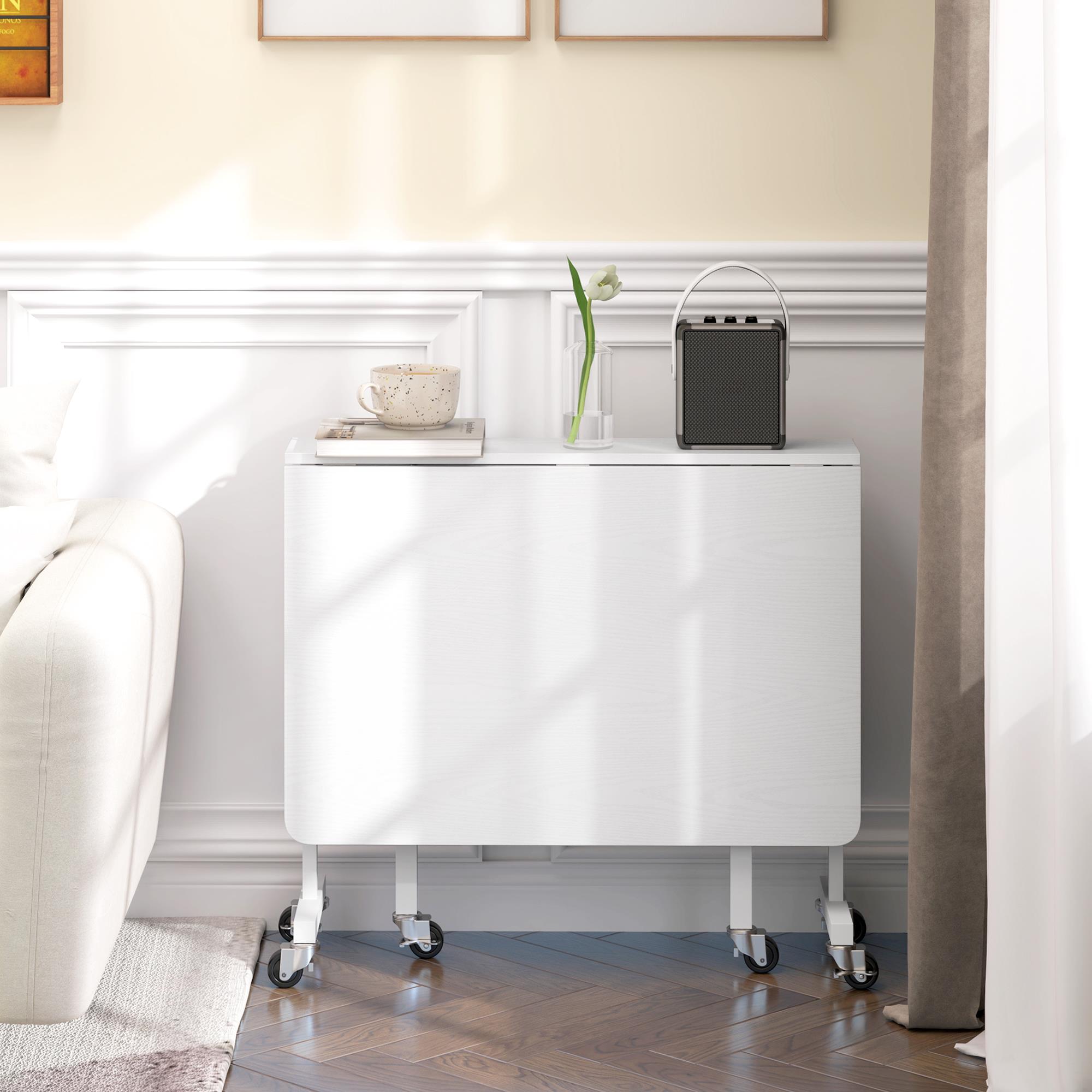 Mesa de Reuniões NICOSIA, em Metal e Madeira, Dobrável com Rodas, 2 Abas Rebatíveis, 120x80x73 cm, Cor Branca
