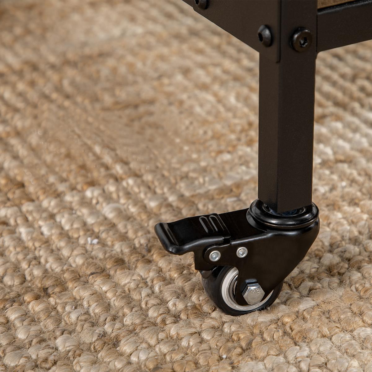 Equipada com rodas giratórias de alta resistência com sistema de travagem, a mesa garante uma mobilidade fluida entre diferentes áreas ou dentro da mesma sala. Esta funcionalidade permite reconfigurar o layout do escritório em tempo real, facilitando a colaboração espontânea. A prateleira inferior integrada oferece ainda um compartimento prático para dossiers, arquivos ou equipamentos de hardware.