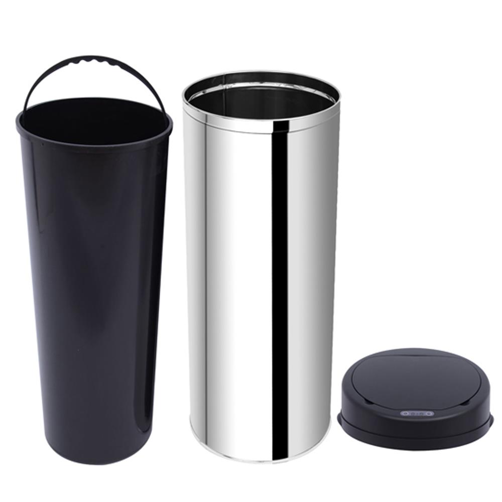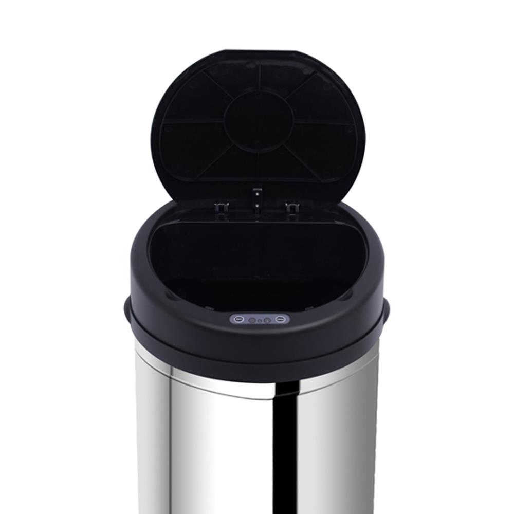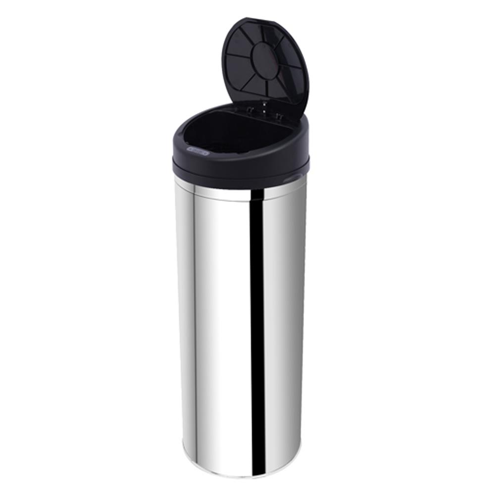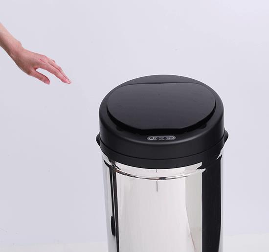 La principal ventaja de este modelo es que cuenta con un sensor de infrarrojos que detecta el movimiento y provoca la apertura automática de la puerta, pudiendo arrojar dentro lo que sea sin necesidad de tocar la papelera. Este sensor funciona con 4 pilas tipo AA (no incluidas en el suministro) cuyo consumo es mínimo y duran mucho tiempo, ya que este sensor apenas consume energía. No obstante, si lo prefieres, el sensor puede ser apagado y puedes abrirla a mano.