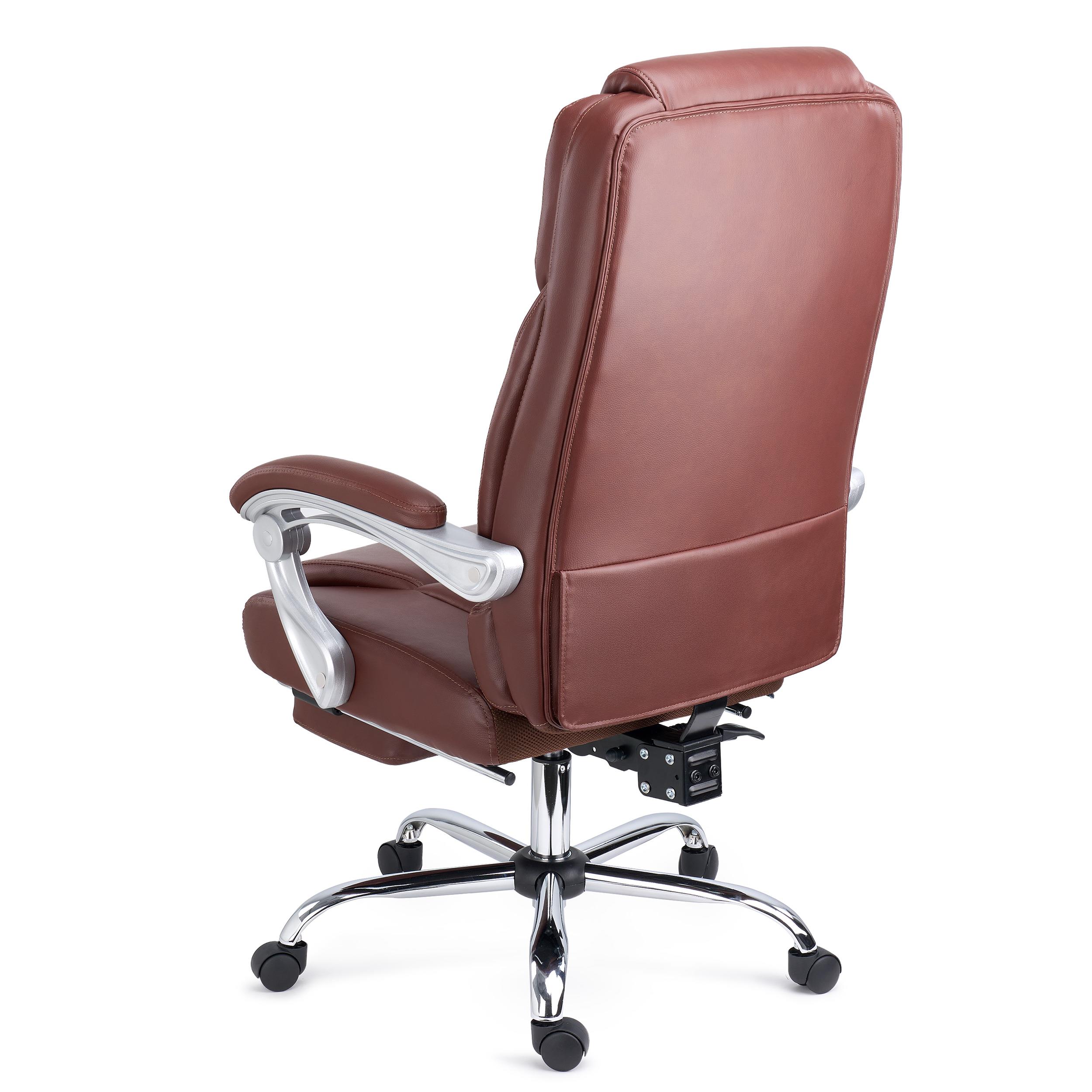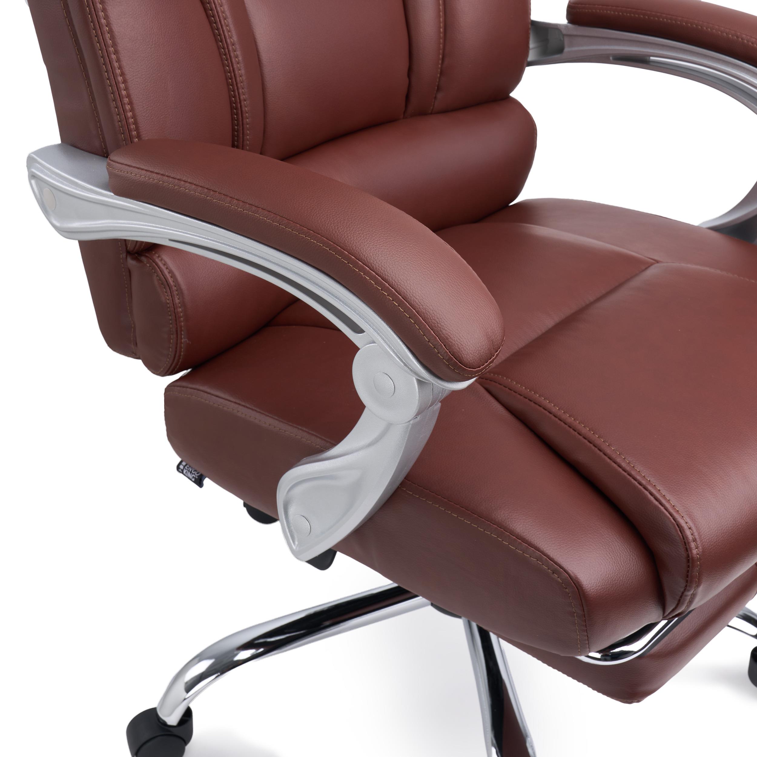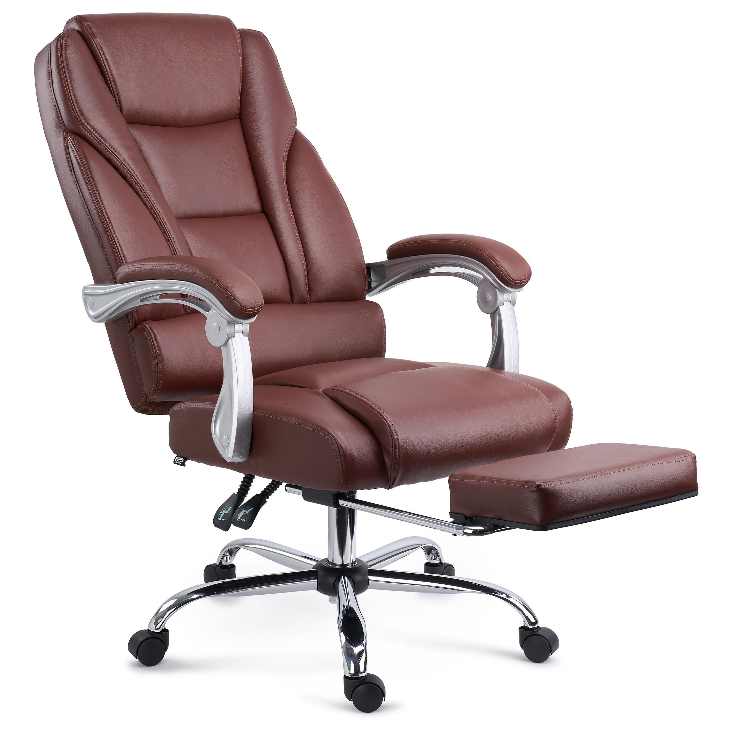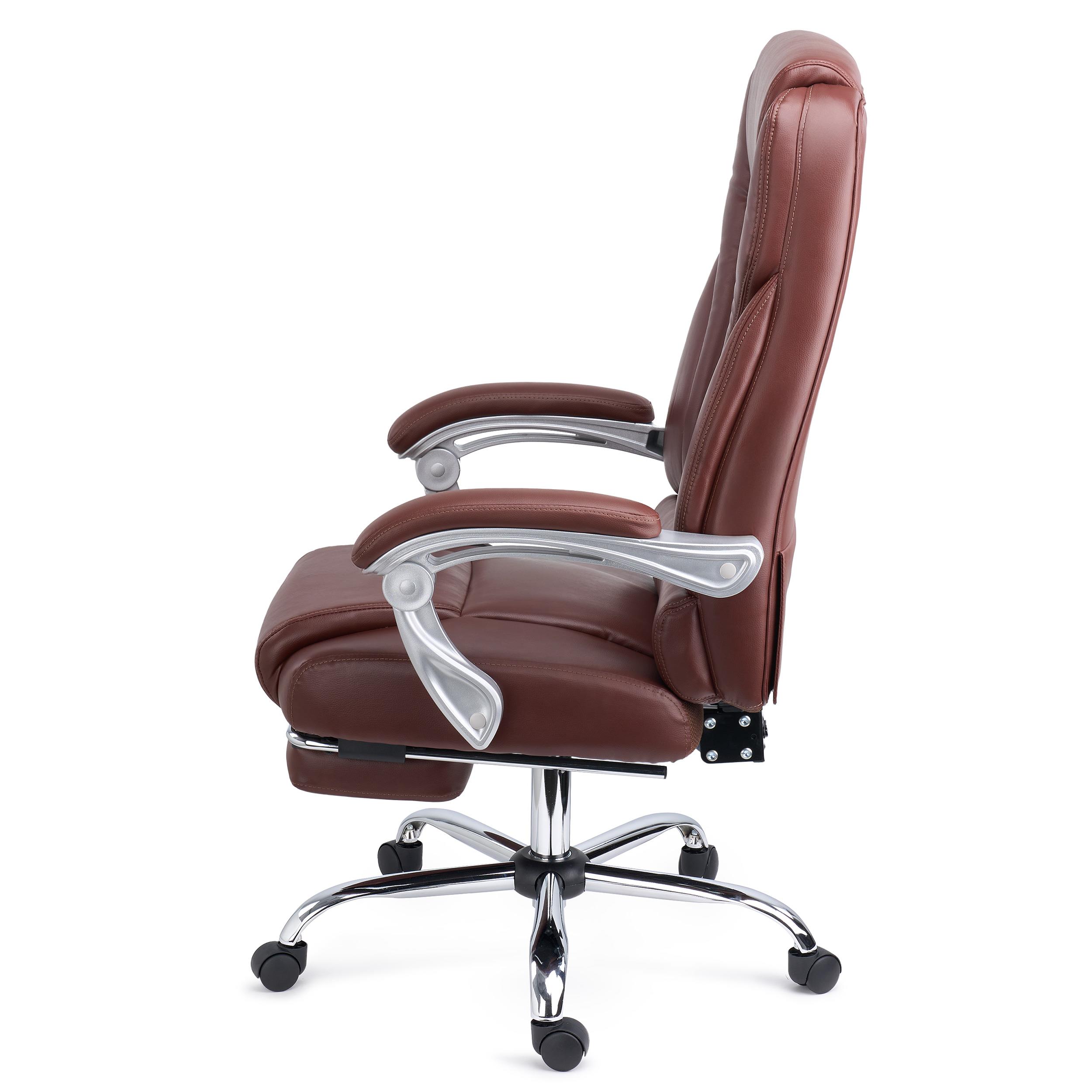 Poltrona de Escritório COMODITY, Acolchoado de Alta Densidade, Apoia Pés Extensível, em Pele Castanha