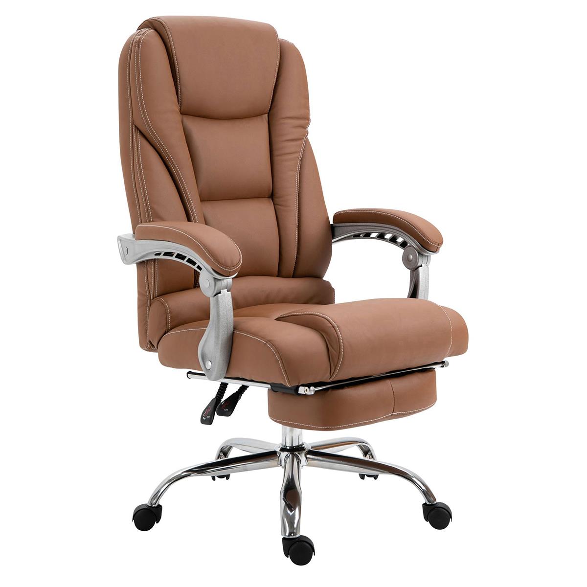 Poltrona de Escritório COMODITY, Acolchoado de Alta Densidade, Apoia Pés Extensível, em Pele Castanho Claro