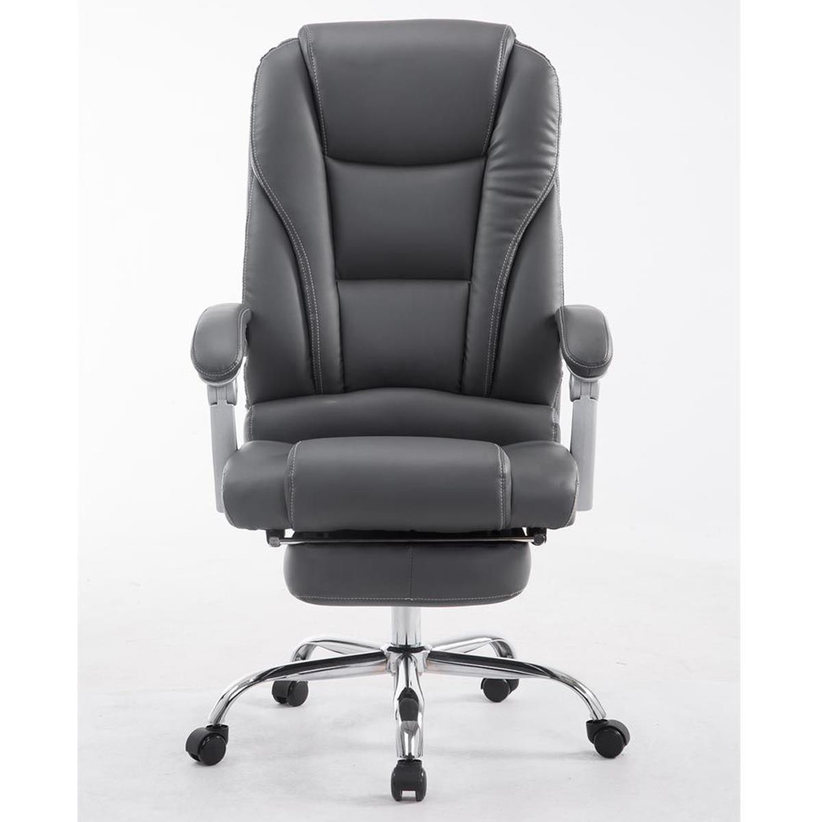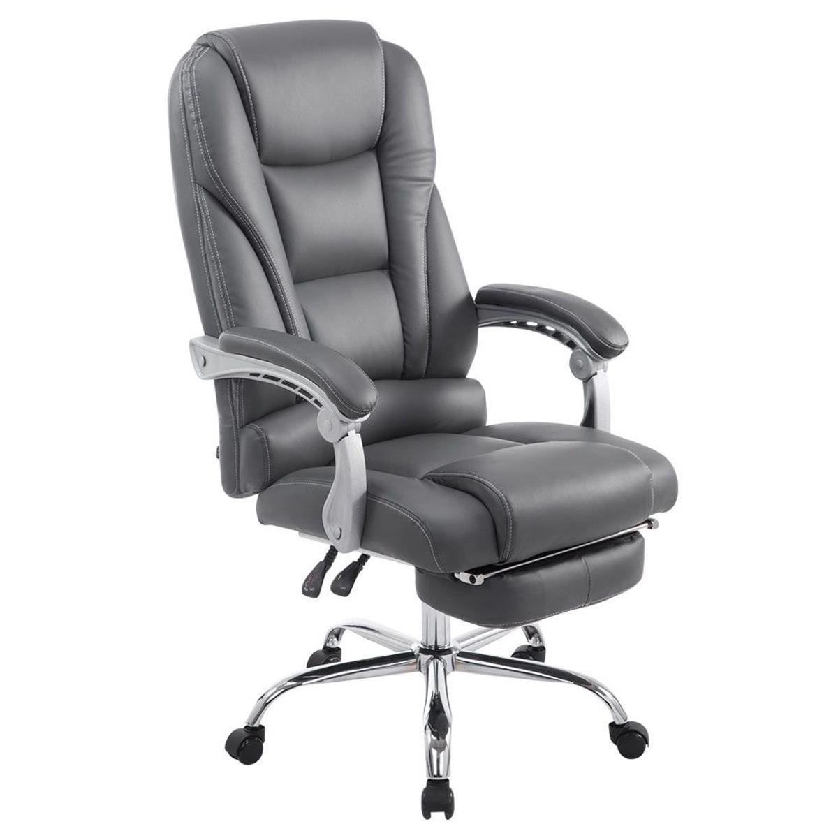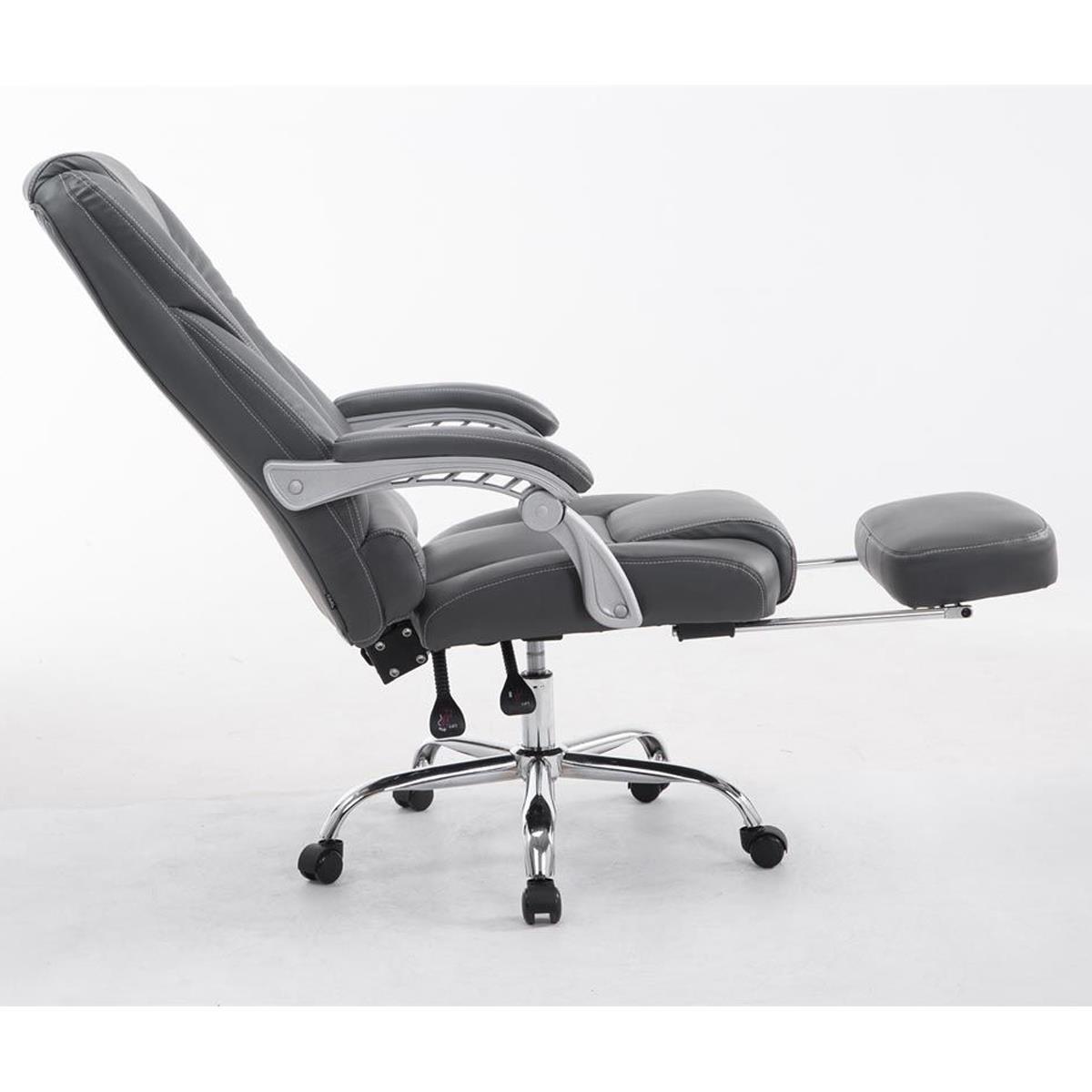 Poltrona de Escritório COMODITY, Acolchoado de Alta Densidade, Apoia Pés Extensível, em Pele Cinzenta
