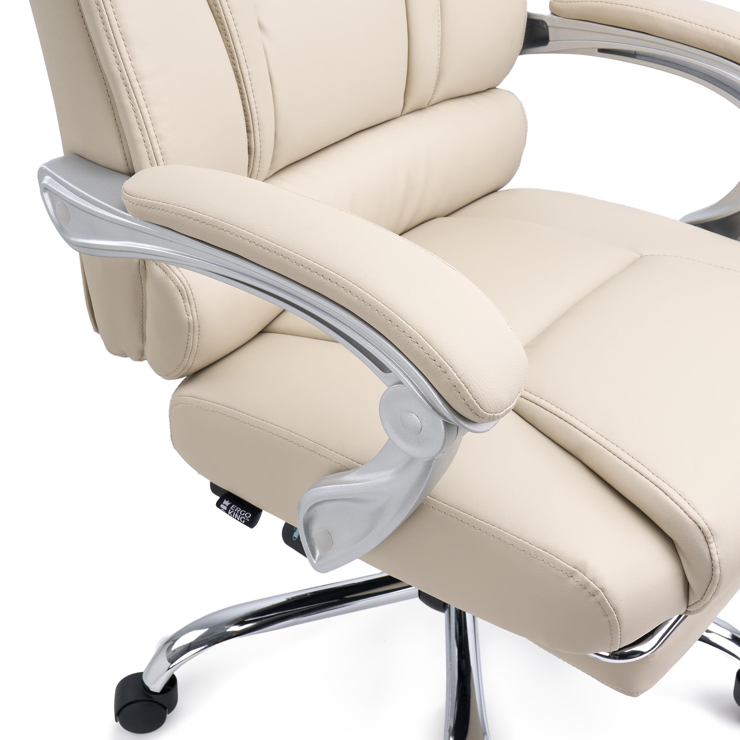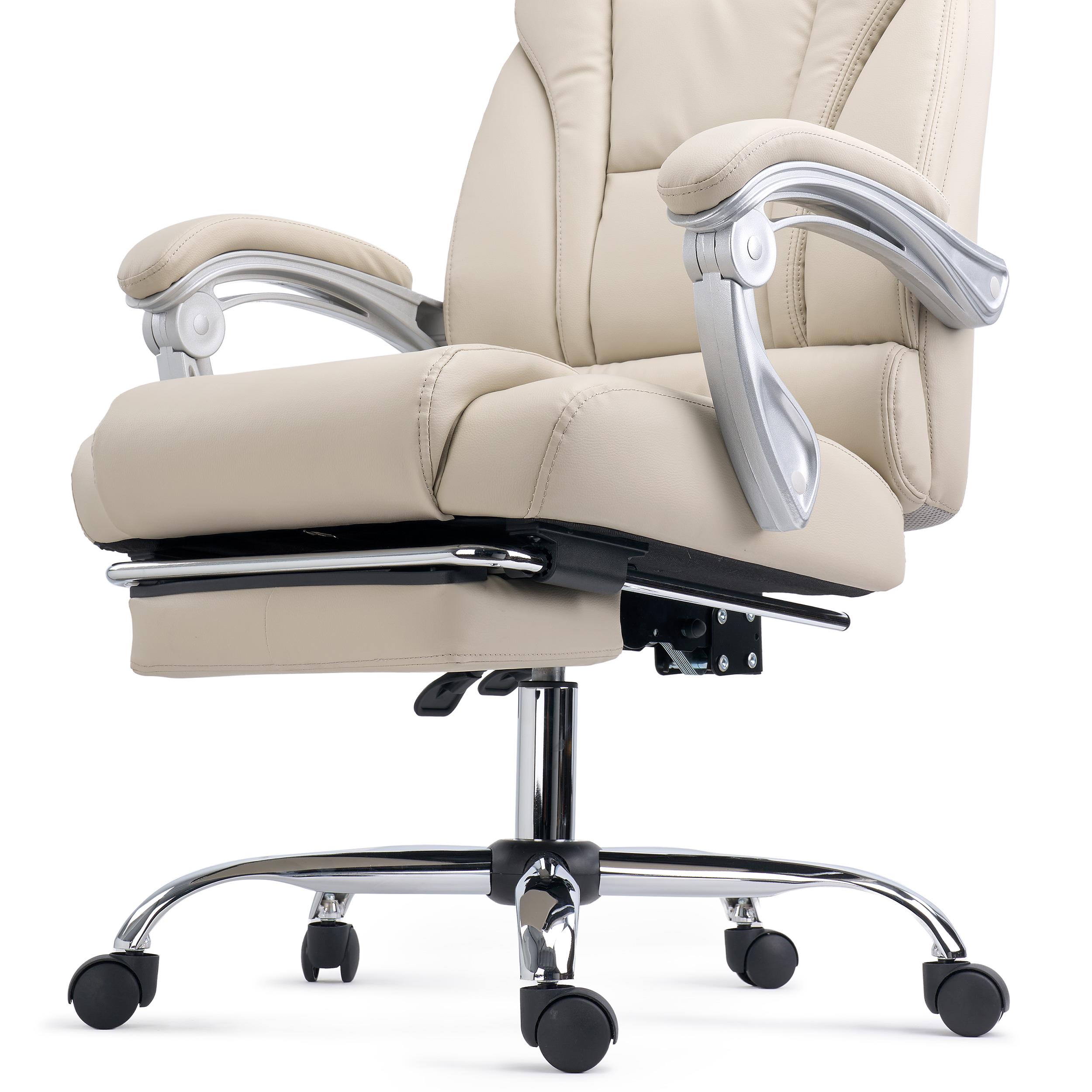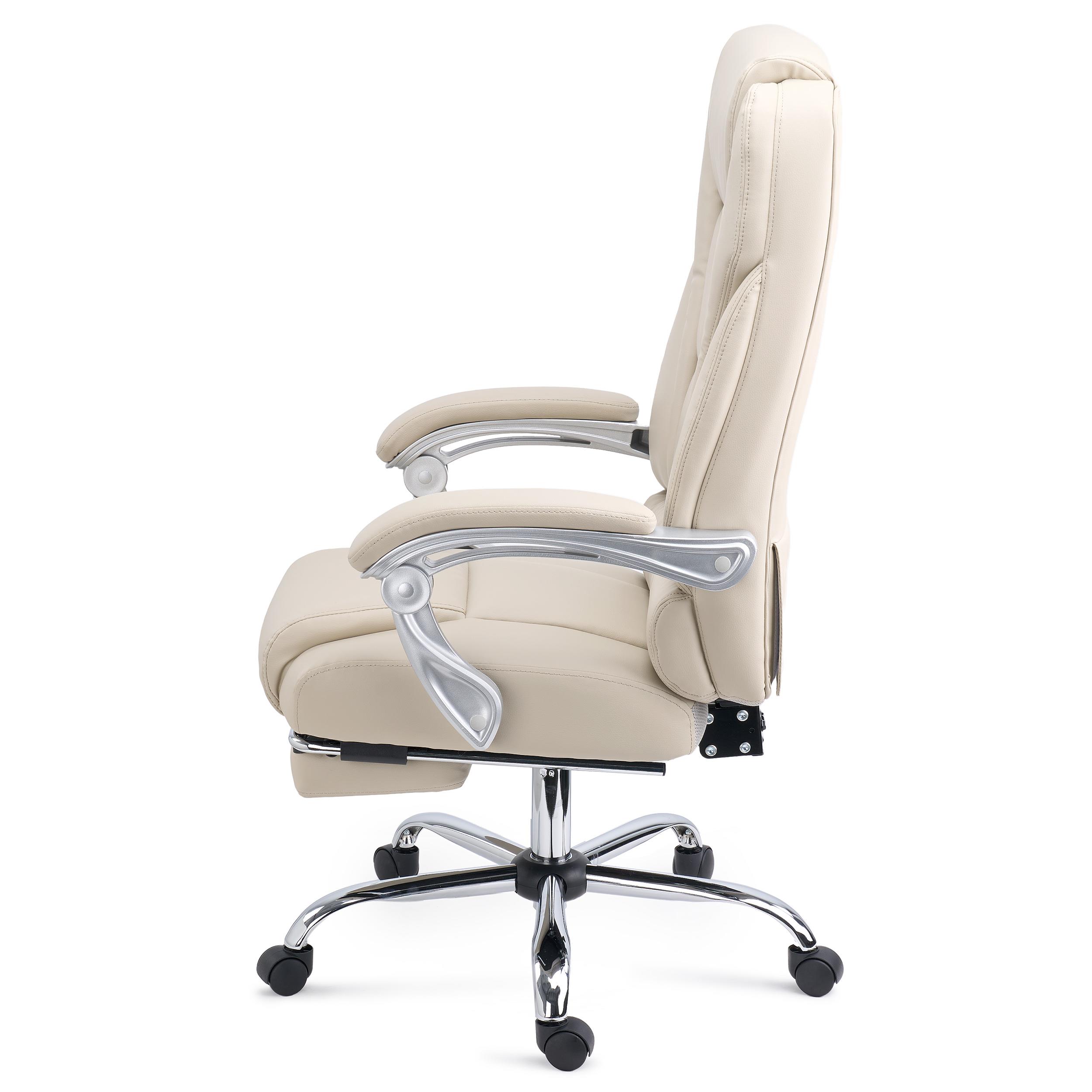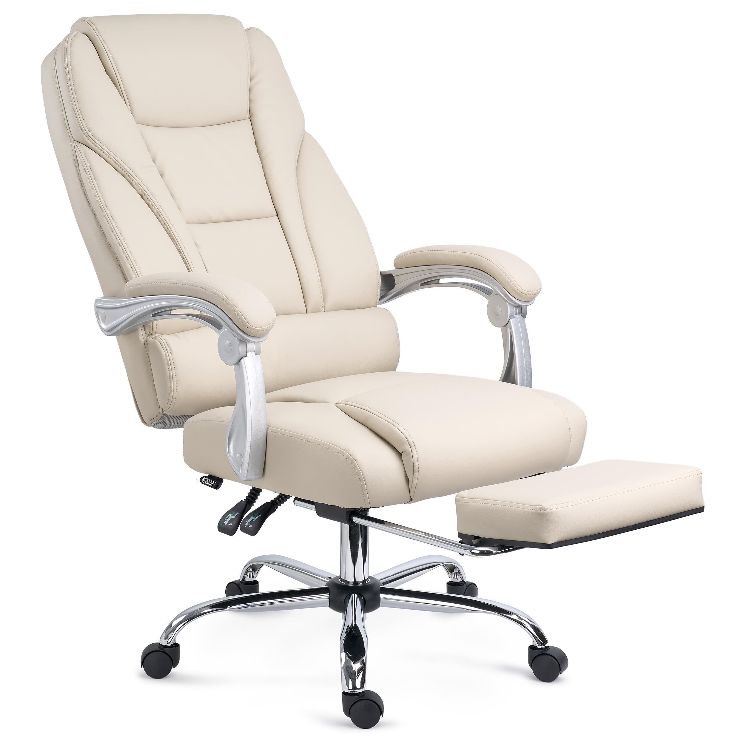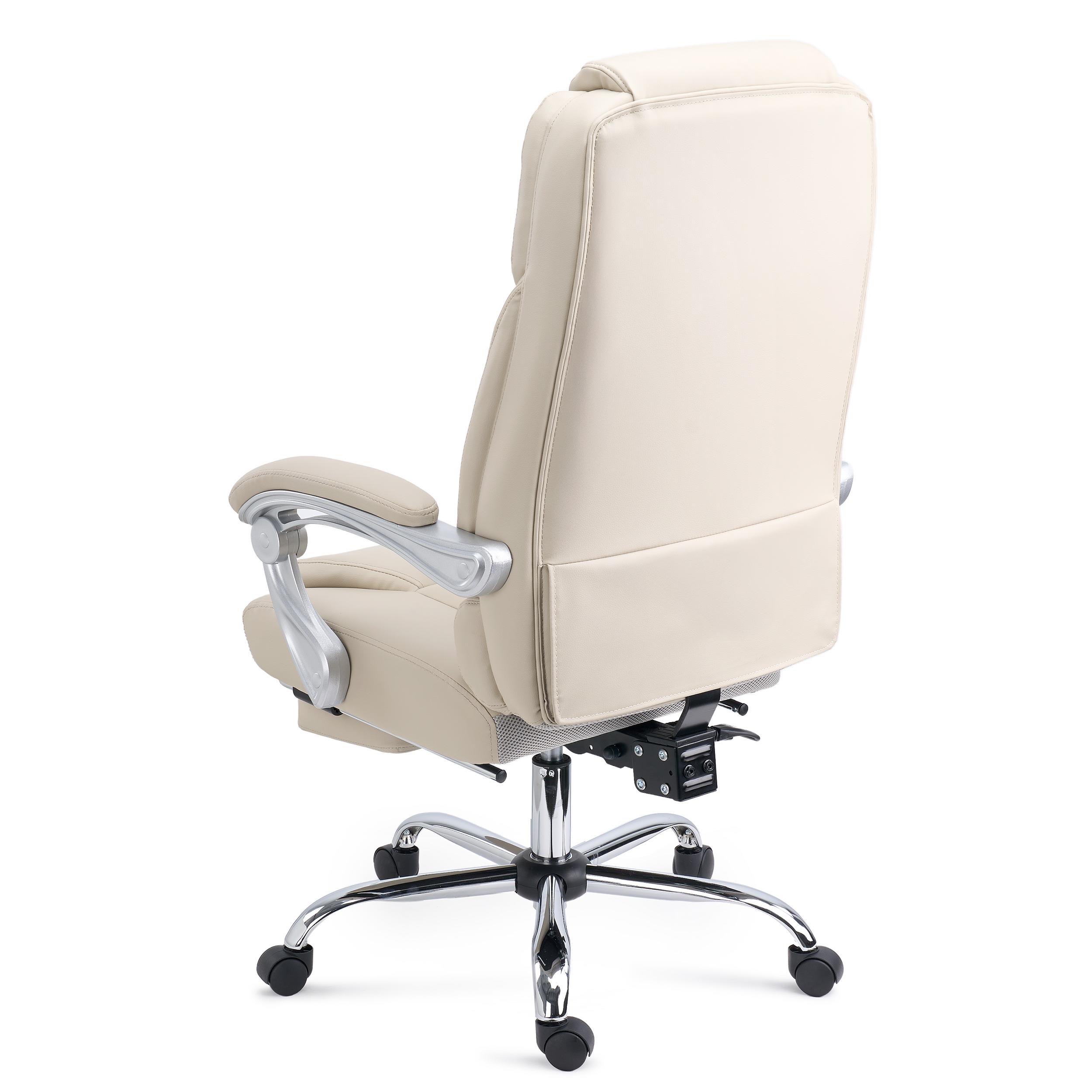 Poltrona de Escritório COMODITY, Acolchoado de Alta Densidade, Apoia Pés Extensível, em Pele Creme