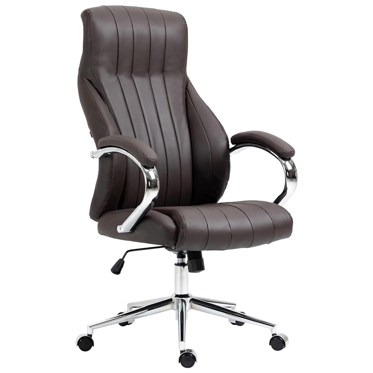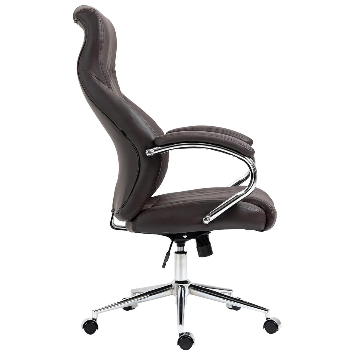 Os apoia braços seguem o mesmo padrão de sofisticação. Com estrutura robusta em metal cromado e acolchoamento na parte superior, oferecem excelente apoio e adicionam um toque elegante e profissional à composição do móvel.