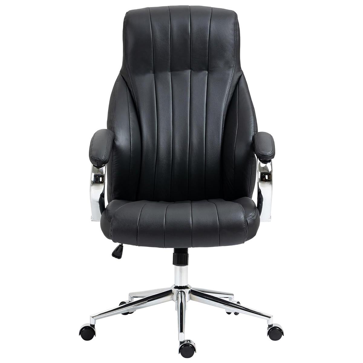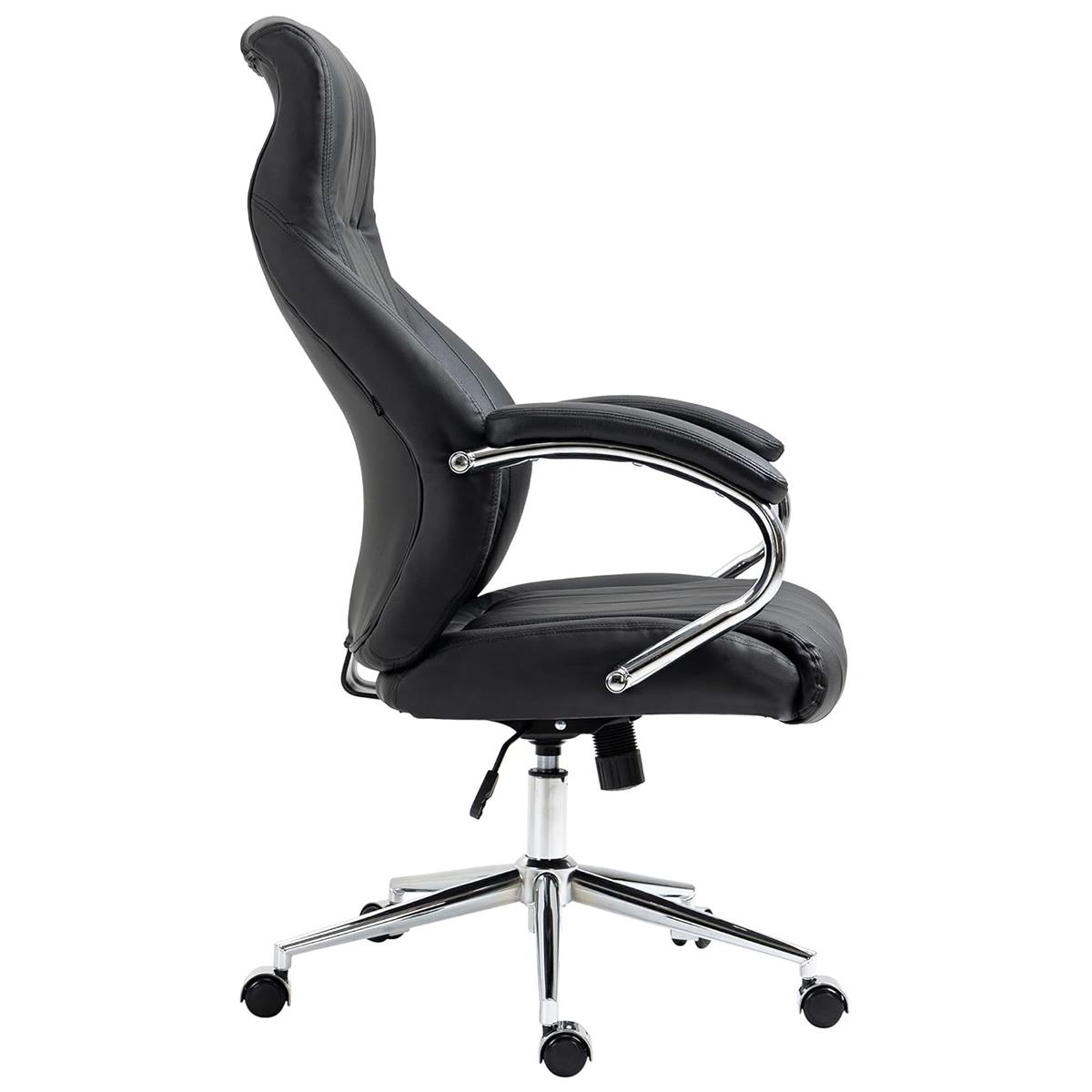 Os apoia braços seguem o mesmo padrão de sofisticação. Com estrutura robusta em metal cromado e acolchoamento na parte superior, oferecem excelente apoio e adicionam um toque elegante e profissional à composição do móvel.
