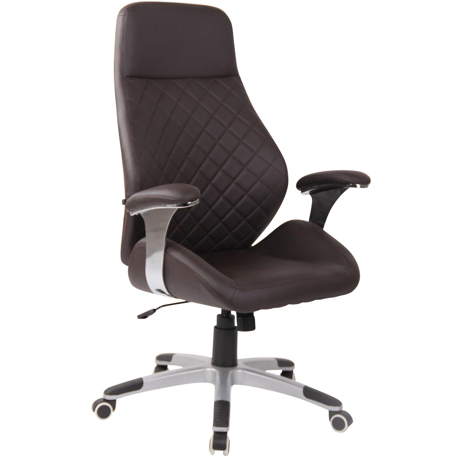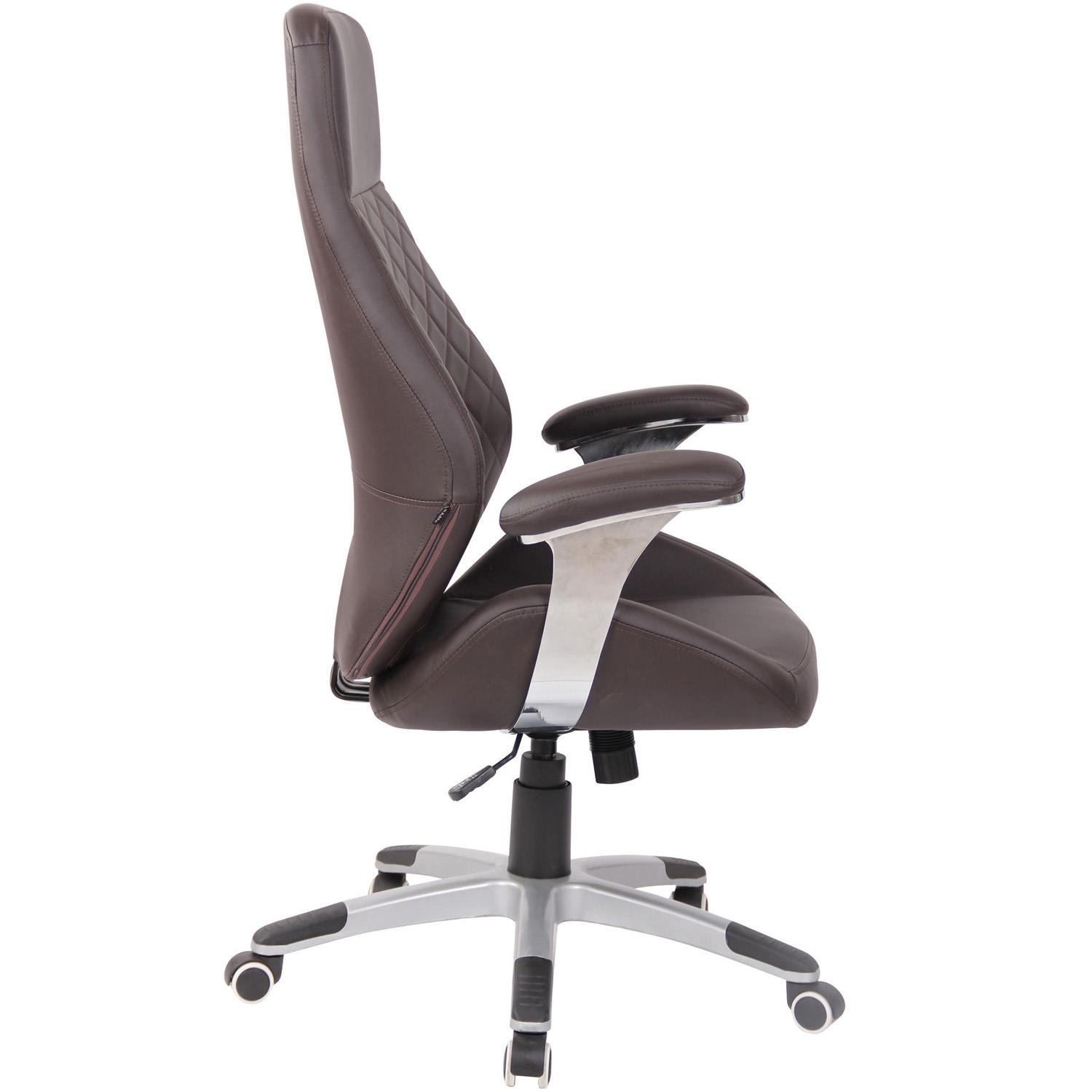 Poltrona de Escritório DRESDEN, Encosto Alto, Comodidade, Em Pele, Cor Castanho Escuro