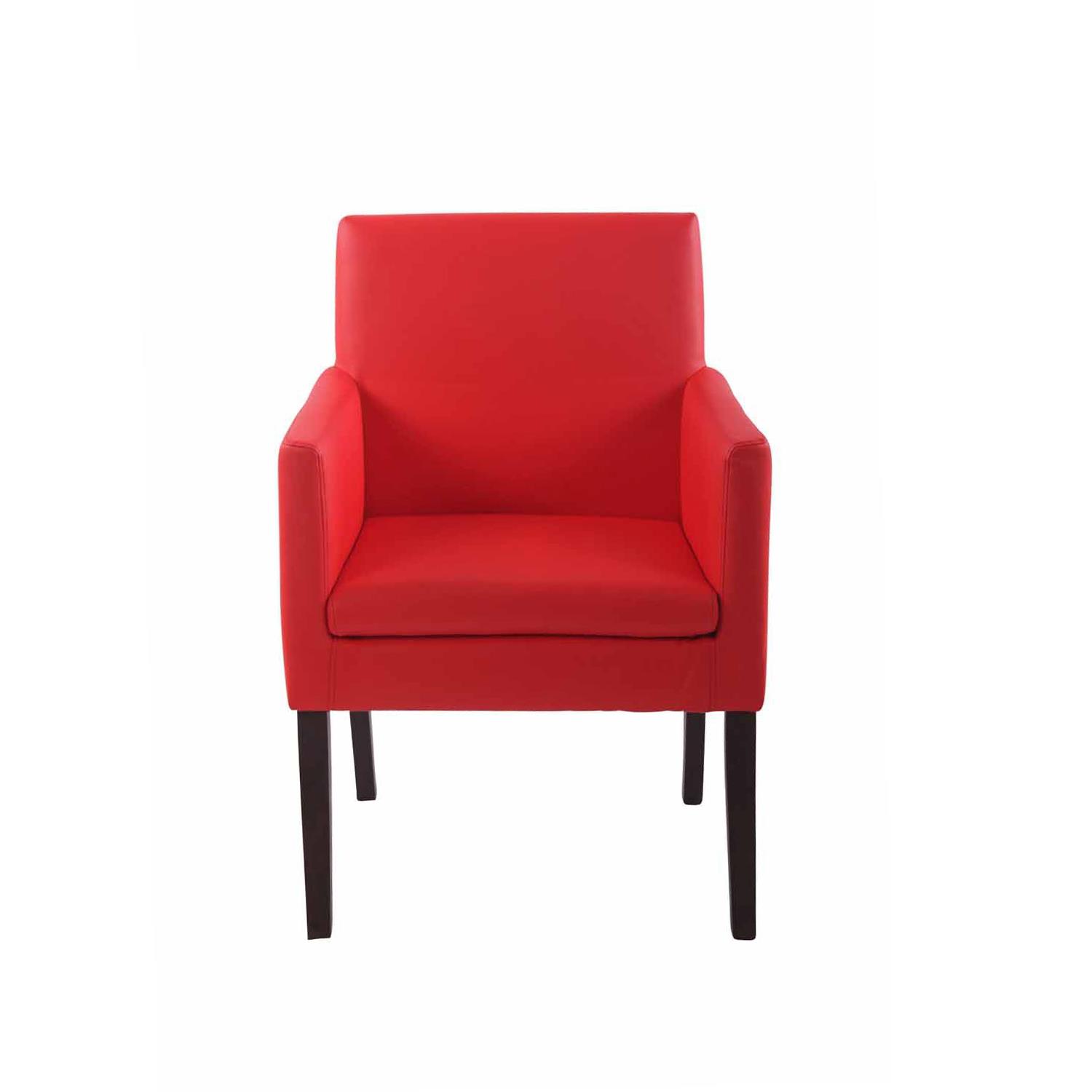 Poltrona de Visita, NOAH, Acolchoada, Pernas Escuras, Em Pele Cor Vermelho