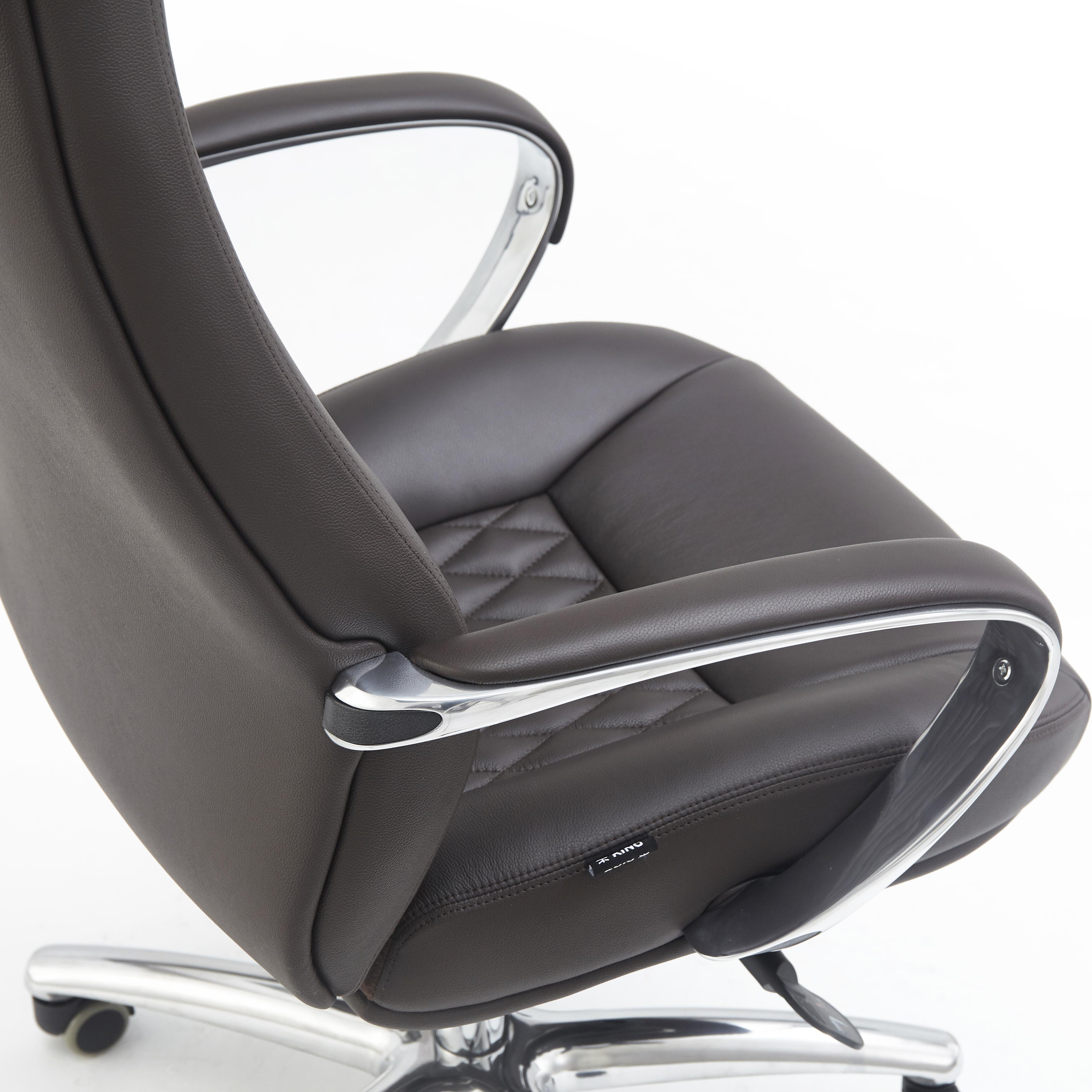 Poltrona Ergonómica TINDAYA, Design Exclusivo, Em Pele Verdadeira, Cor Castanho Escuro