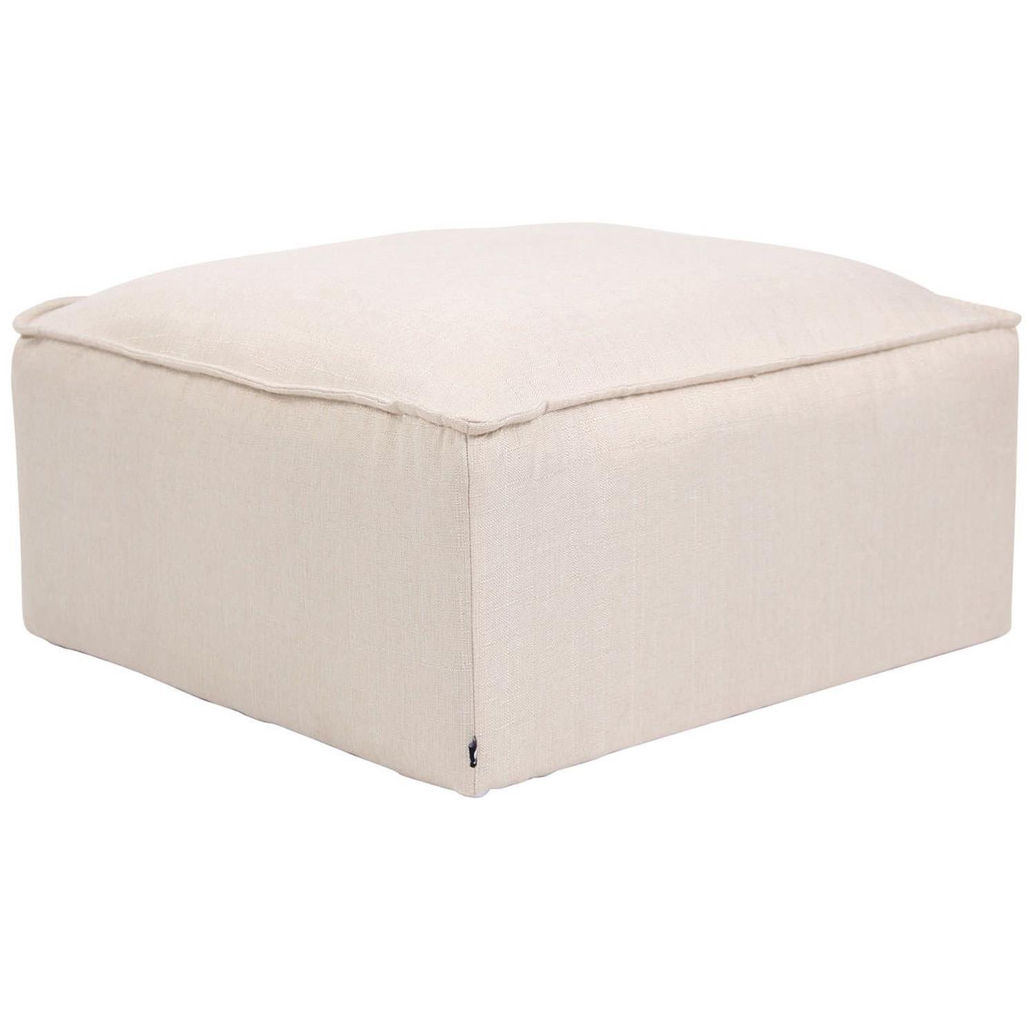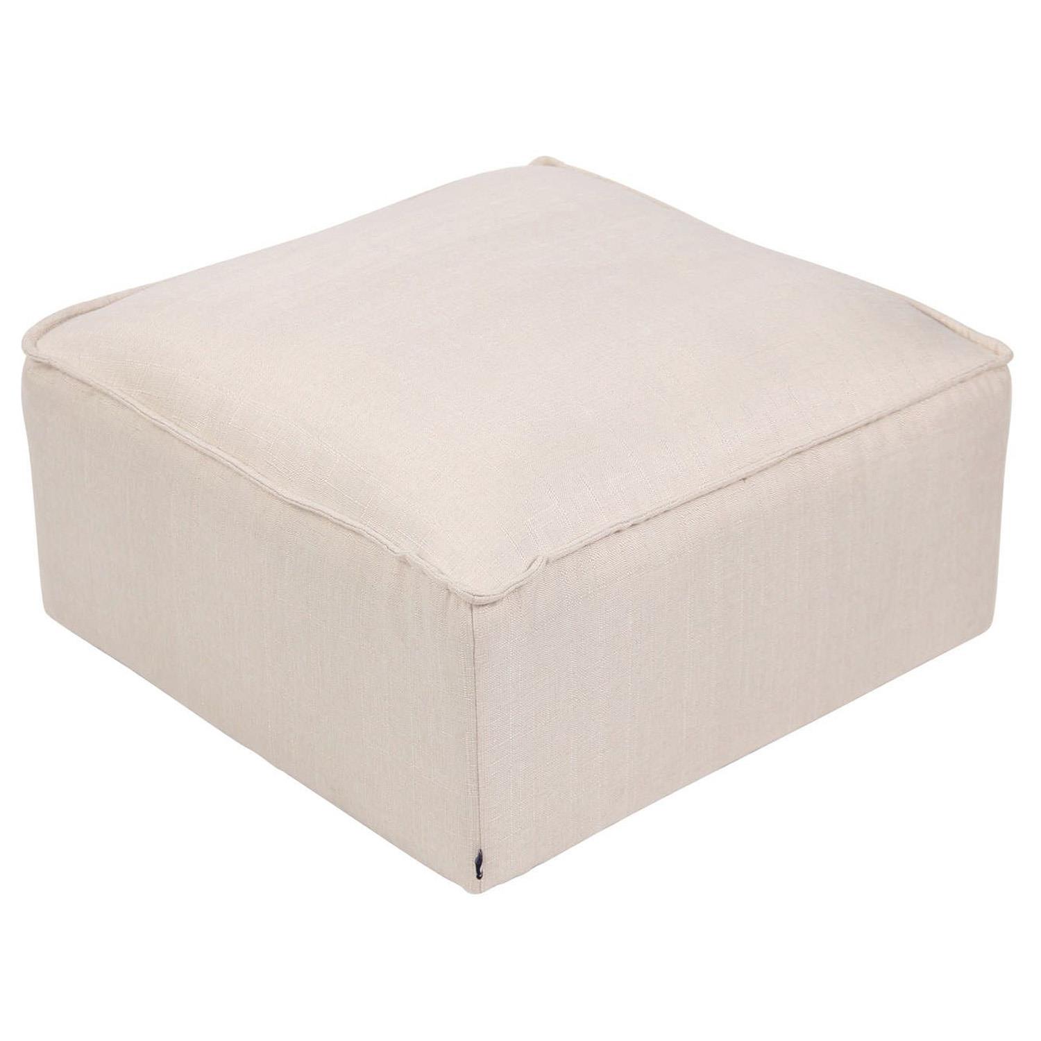 Puff Quadrado PRAIA, Modelo Elegante, Acabamento em Pano, Cor Creme