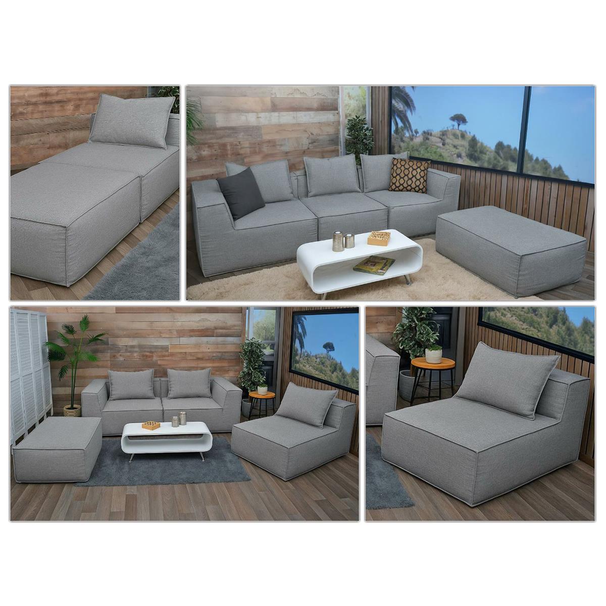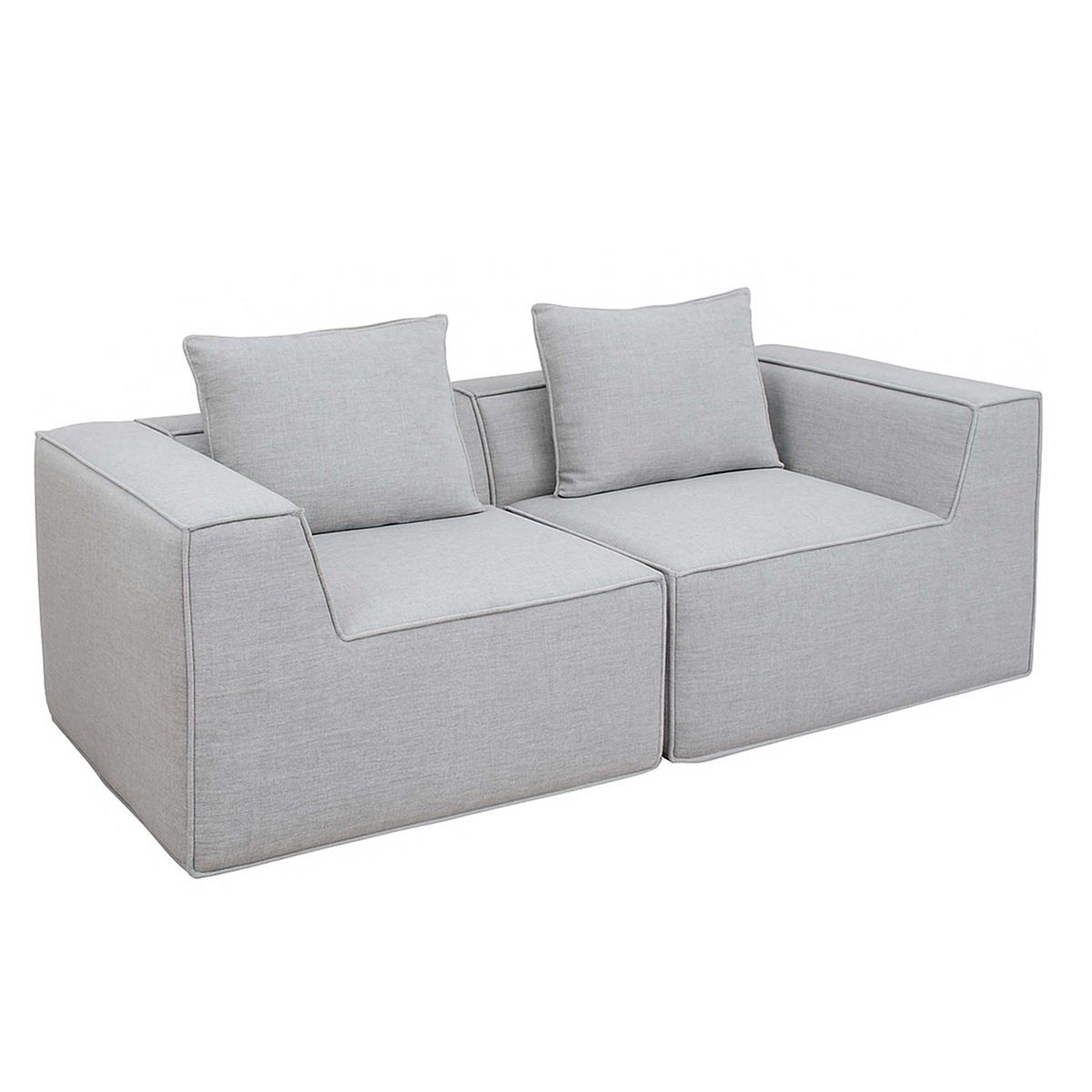 Sofá Modular 2 lugares NANUK, Grosso Acolchoado, em Pano de cor Cinzento claro