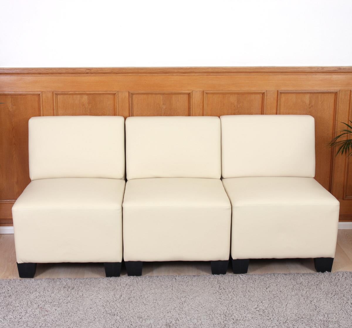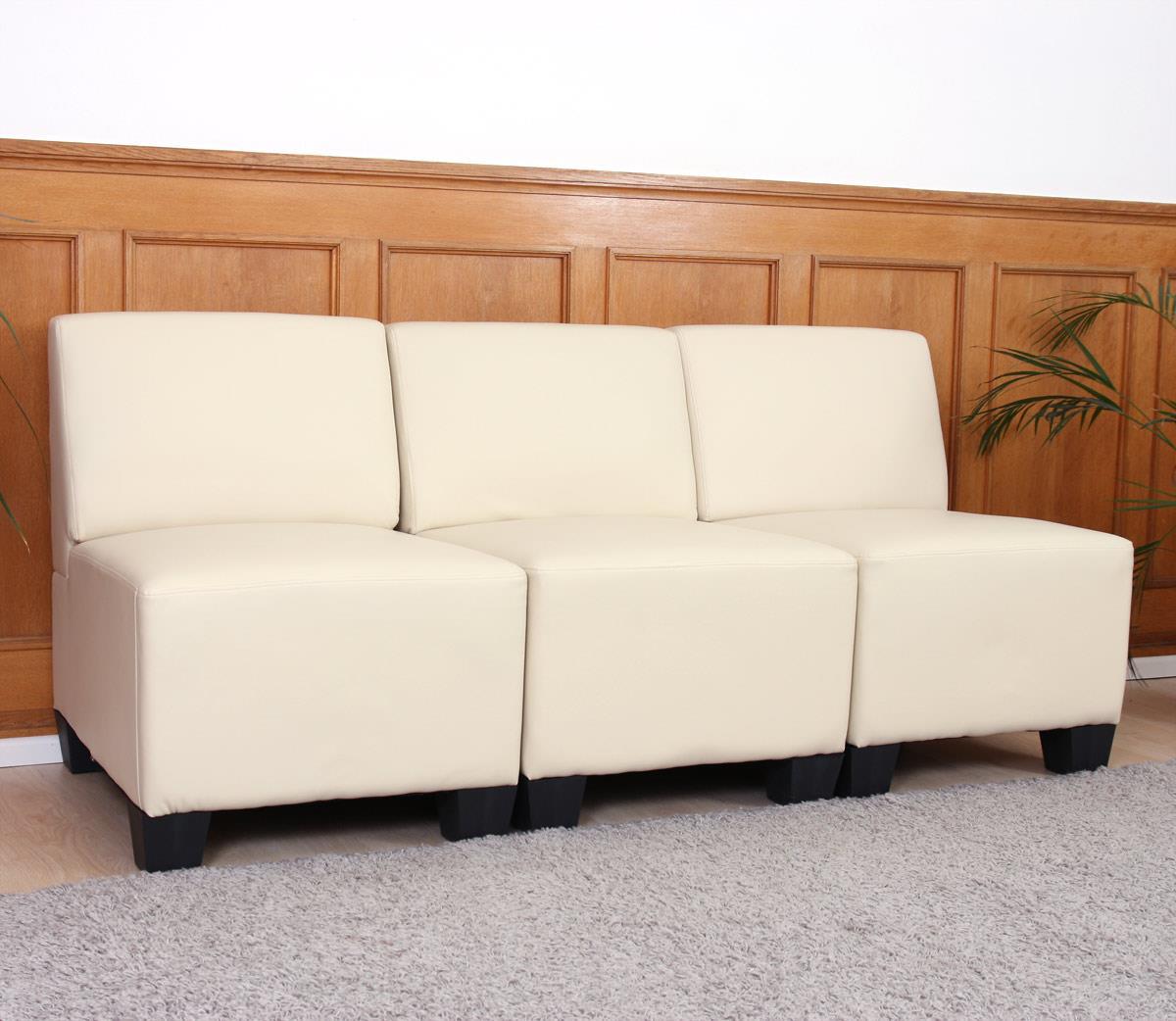 Sofá Modular 3 lugares LONY, Sem Apoia Braços, Grosso Acolchoado, Em Pele, Creme
